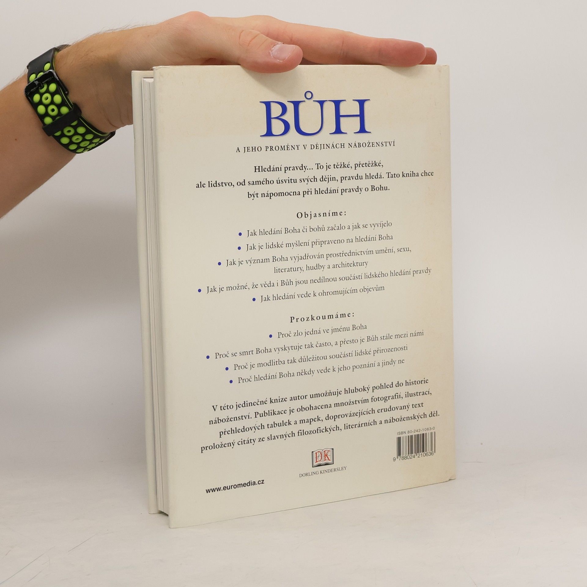 V této knize muži i ženy vyprávějí svými vlastními slovy, co pro ně Bůh znamená, i o tom, co může znamenat pro ostatní. Jejich důvěrná slova jsou určena právě pro tuto knihu. Ukazují, že lidé všech generací, lidé ze všech koutů světa, mají podobné zážitky s Bohem, poznání Boha jim umožňuje poznat a objevit záhady jejich světa… Často jsou spletitá tajemství chápána špatně, a je třeba pátrat a hledat pravdu dál, napravovat omyly. Abychom našli pravdu o současnosti a snad i o budoucnosti, musíme se obrátit ke své minulosti. Bůh zemřel mnohokrát; přesto žije dál a my jej můžeme najít. V sobě. Publikace je obohacena množstvím fotografií, ilustrací, přehledových tabulek a mapek, doprovázejících erudovaný text proložený citáty slavných filozofických, literárních a náboženských děl.