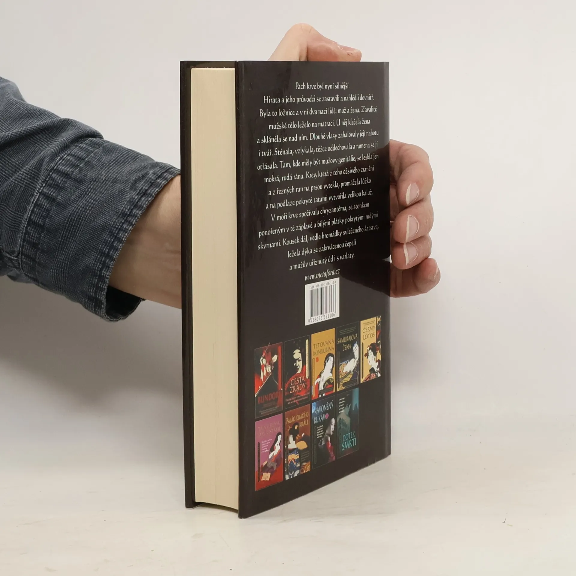 Japonsko roku 1698. Samuraj Sano Ičiró je falešně obviněn z velezrady. A aby toho nebylo málo, dopadne další drtivá rána. Vedle obnažené, vykastrované mrtvoly mocného muže je nalezena, rovněž nahá, Sanova těhotná manželka Reiko. Ta ovšem tvrdí, že pán Mori, z jehož vraždy je vzápětí obviněna, zneužíval a zabíjel malé chlapce a že do jeho domu se vloudila proto, aby ho usvědčila. Dál už ji ale mysl zrazuje a kreslí jí přízračné obrazy její vlastní nevěry a odporných detailů vraždy. Sanovi nepřátelé nyní útočí na oba současně, takže se zdá, že před popravištěm už je nikdo a nic nezachrání. Nebyl by to ale Samo Ičiró, aby se přes vlastní pochybnosti nevrhl do boje a nepokusil se zachránit sebe, svou ženu i jejich nenarozené dítě. Jedenáctá kniha historické detektivní série Sano Ičiró.
