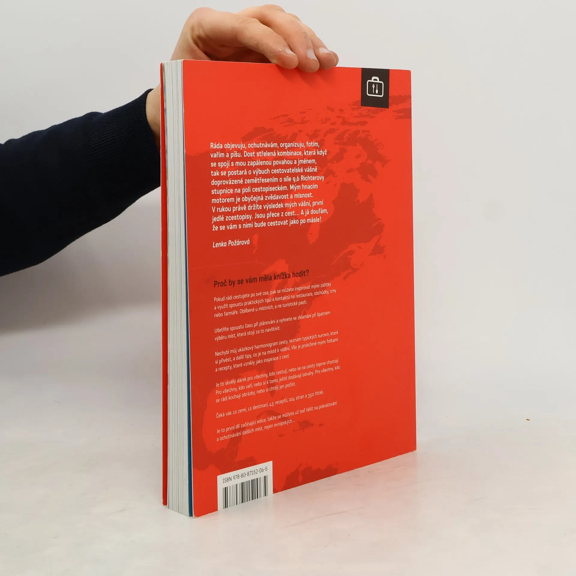 Zapálená kuchařka Lenka Požárová má několik nezkrotných vášní. Cestování, vaření, focení, poznávání a psaní. Když toto všechno zkombinovala se svou precizností a smyslem pro detail, vznikla unikátní autorská knížka „Jak jsem proje(d)la svět“. Je to současně čtivě psaný cestopis, kulinární průvodce, kuchařka s originálními recepty vzniklými na základě cestovatelské inspirace (nikoli opsanými) i bohatá fotokniha. Nechybí spousta informací kdy, kam a proč. Uvedeny jsou jen místa, která autorka sama navštívila a připojeny jsou všechny kontakty na navštívené restaurace, obchůdky, farmy či tržiště v Provence, Curychu, Vídni, Miláně, Budapešti, Istanbulu, Mnichově, Kodani, Malmö, Belgii, Štýrsku nebo Apulii. S knížkou ušetříte čas vyhledáváním typických míst, která mají rádi místní, a vyhnete se turistickým pastem z běžných turistických průvodců.