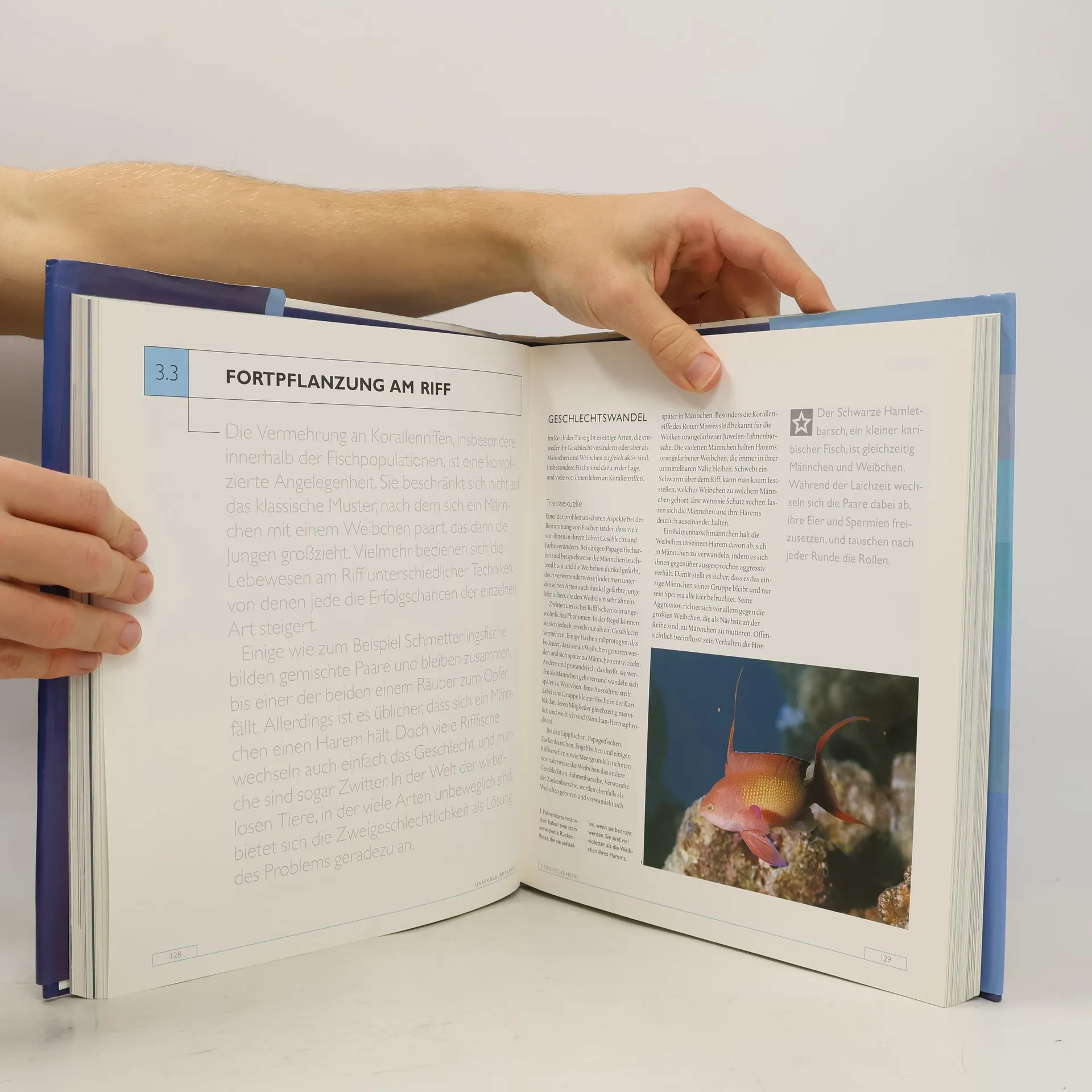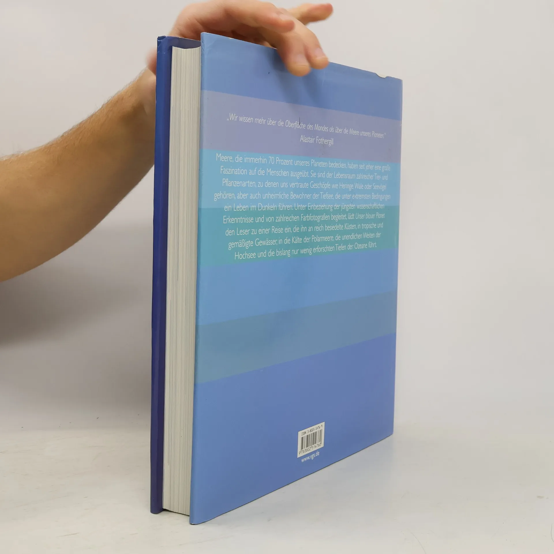 Begleitend zur gleichnamigen Dokumentarserie der BBC zur Meeresbiologie, bei uns bekannt durch WDR und BR, erscheint dieser Bildband, der den Leser in die verschiedenen Bereiche einführt, die die Meere charakterisieren: Küsten, tropische, gemäßigte und polare Meere, offener Ozean und Tiefsee. Wissenschaftlich fundierte und dennoch verständliche Texte informieren breite Leserschichten über Flora und Fauna, aber auch aktuelle Themen wie den Thunfischfang. Hervorragende Farbfotografien steuern ihren Anteil zu dem prächtigen Band bei. Verweise am Ende mancher Kapitel auf thematisch passende Stellen im Buch gestalten das Lesen zusätzlich abwechslungsreich. Ein Register hilft bei der Suche, ein Glossar erklärt Fachausdrücke: Popularwissenschaft par exellence