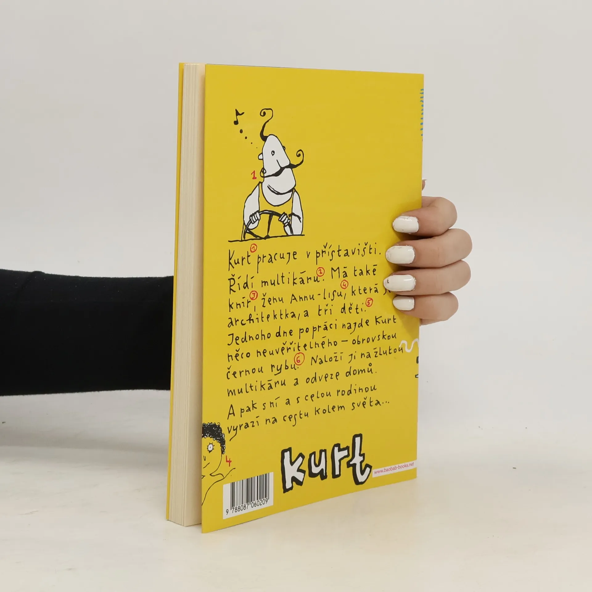 Kurt má knír, multikáru, ženu architektku a tři děti. Jednoho dne po šichtě najde v přístavu velkou černou rybu, která nikomu nepatří, a tak si ji odnese s sebou domů. Jeho rodina tak nečekaně získá dostatek jídla a vyráží s multikárou do světa. Navštíví několik kontinentů a po cestě zažívají neuvěřitelné příhody. Když celou rybu snědí, postaví si její kostru do zahrady jako sochu. Norské i cestovatelské reálie se v knize mísí se zdravou dávkou absurdity, dětským viděním světa a čistou radostí z vyprávění. Kurt je jednoduchý a naivní, ovšem v jeho světě je možné skoro všechno, takže proč se omezovat realitou!