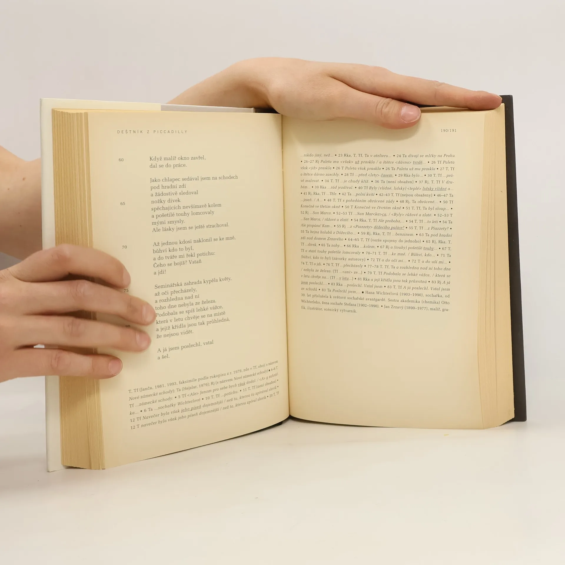 Svazek soustřeďuje básníkovy poslední tři sbírky Morový sloup, Deštník z Piccadily a Býti básníkem. První z nich, která měla být jakýmsi rozloučením se čtenáři, patří k autorovým nejintimnějším sbírkám. V Deštníku z Piccadily autor naopak otevírá svět vzpomínek, zpovědí a prožitých příběhů, svět lásky, ale i smrti. Skutečným rozloučením se čtenáři se vlastně stala až poslední sbírka Býti básníkem, jejíž titul i motto převzaté z pomájovského básníka V. Šolce naznačuje, že v ní půjde o "sladké neštěstí" býti básníkem. Svazek doplňuje přehled nejrůznějších samizdatových i pololegálních edic Seifertových veršů ze 70. a 80. let.