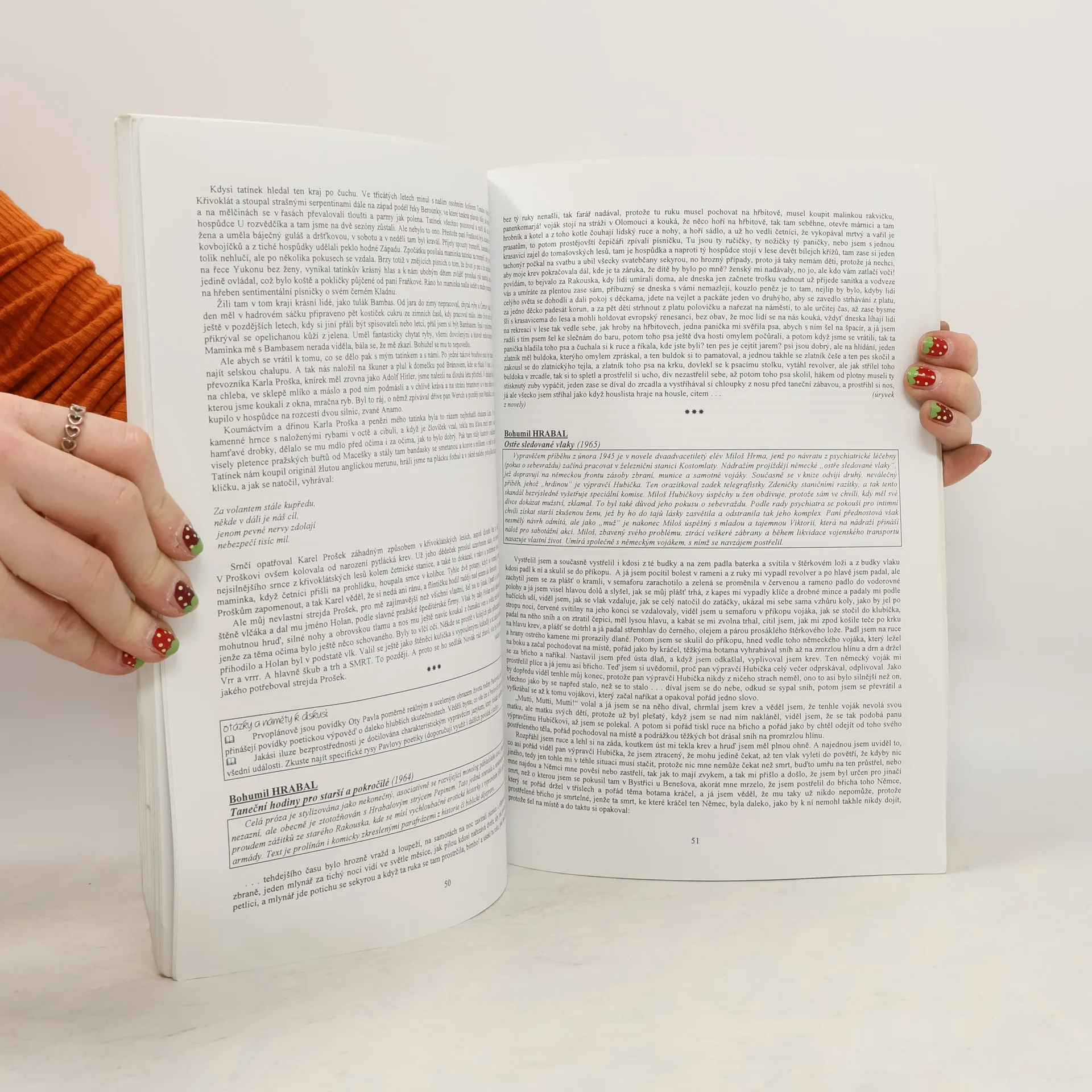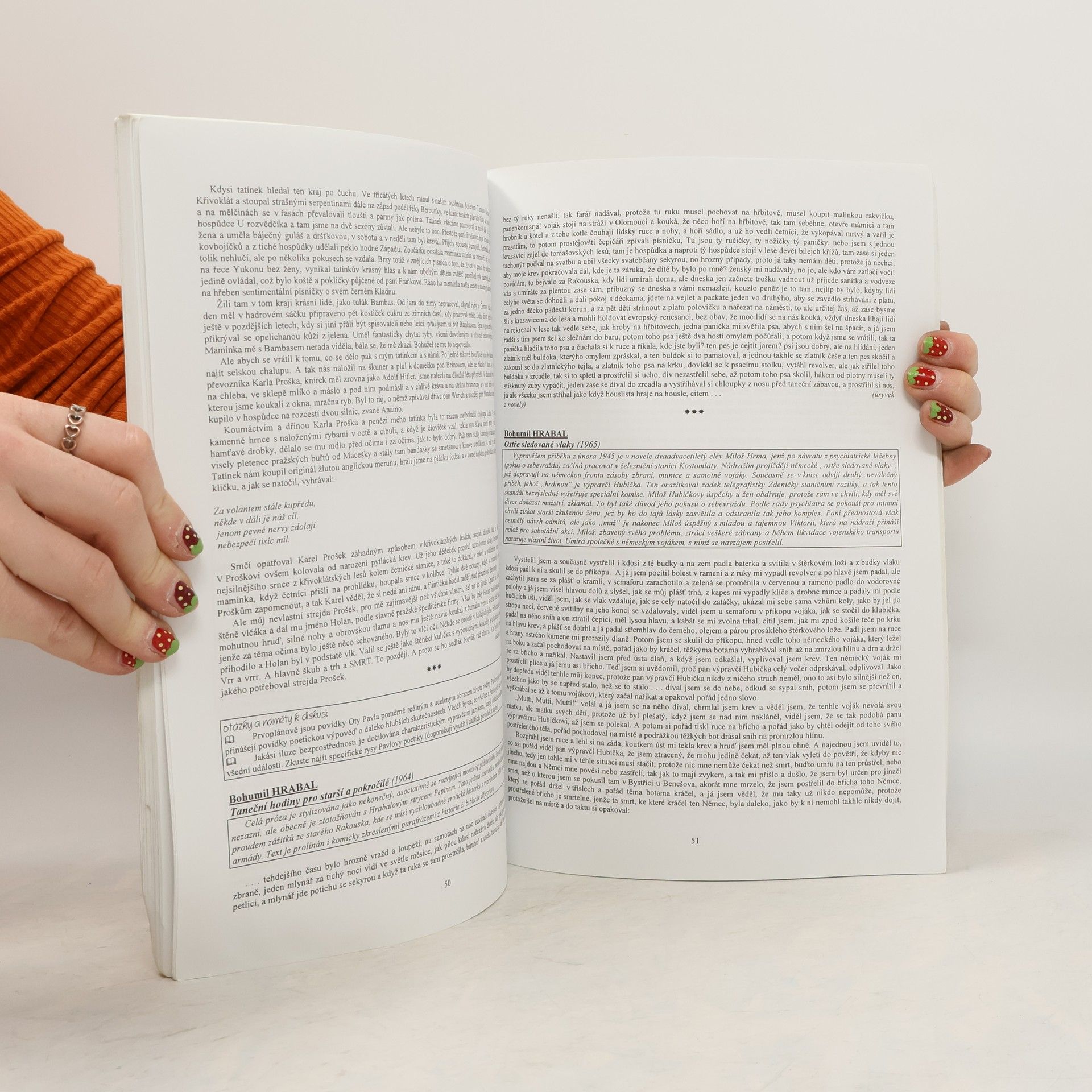 Tato čítanka je koncipována tak, aby vytvářela organický celek s publikací Přehled české literatury 20. století. Je proto logické, že nejen výběr, ale i chronologické řazení ukázek byly podřízeny tomuto titulu. Zcela záměrně nejsou v čítance zbytečně dlouhé prozaické texty, jejich rozsah respektuje časové možnosti v hodině českého jazyka. Otázky a náměty k diskusi, které doprovázejí každý celek, nejsou dogmatem, vnímejte je proto, prosím, pouze jako užitečnou pomůcku při výuce. Celá čítanka byla determinována snahou, aby, pokud to nebude nezbytně nutné (například u meziválečných směrů), nebyl jeden autor tříštěn do více kapitol. Proto se může stát, že datace ojedinělých textů není v souladu se začleněním do kapitoly. Jakožto učitel považuje autor tuto skutečnost za daleko menší zlo než "rozpitvat" spisovatele do nepřehledného množství oddílů. Časově nenáročné texty, obsahy všech uvedených prozaických děl, nespočet úkolů a námětů k diskusi.