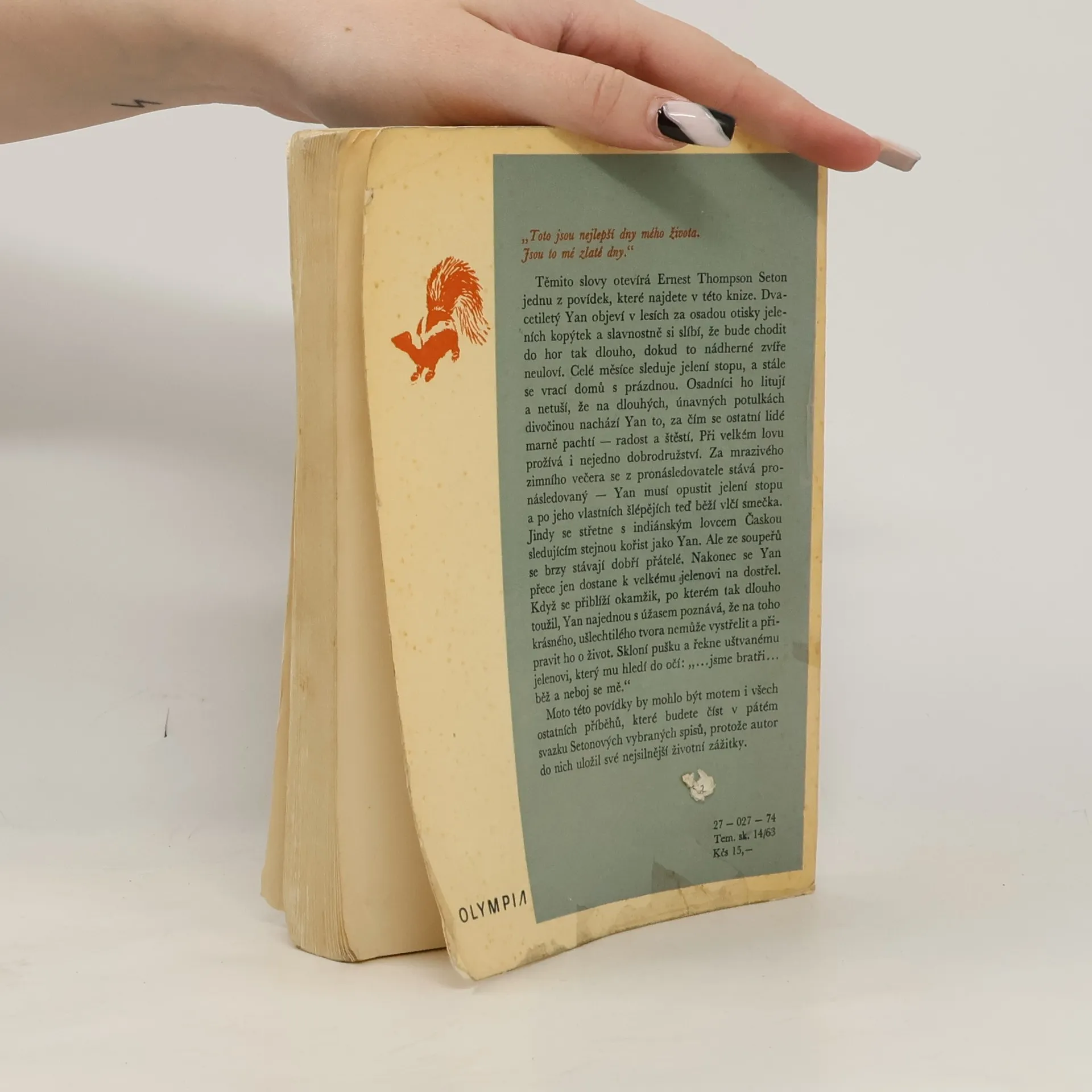 Těmito slovy otevírá Ernest Thompson Seton jednu z povídek, které najdete v této knize. Dvacetiletý Yan objeví v lesích za osadou otisky jeleních kopýtek a slavnostně slíbí, že bude chodit do hor tak dlouho, dokud to nádherné zvíře neuloví. Celé měsíce sleduje jelení stopu, a stále se vrací domů s prázdnou. Osadníci ho litují a netuší, že na dlouhých, únavných potulkách divočinou nachází Yan to, za čím se ostatní lidé marně pachtí - radost a štěstí. Při velkém lovu prožívá i nejedno dobrodružství. Za mrazivého zimního večera se z pronásledovatele stává pronásledovaný - Yan musí opustit jelení stopu a po jeho vlastních šlépějích teď běží vlčí smečka. Jindy se střetne s indiánským lovcem Časkou sledujícím stejnou kořist jako Yan. Ale ze soupeřů se brzy stávají dobří přátelé. Nakonec se Yan přece jen dostane k velkému jelenovi na dostřel. Když se přiblíží okamžik, po kterém tak dlouho toužil, Yan najednou s úžasem poznává, že na toho krásného, ušlechtilého tvora nemůže vystřelit a připravit ho o život. Skloní pušku a řekne uštvanému jelenovi, který mu hledí do očí "... jsme bratři... běž a neboj se mě."