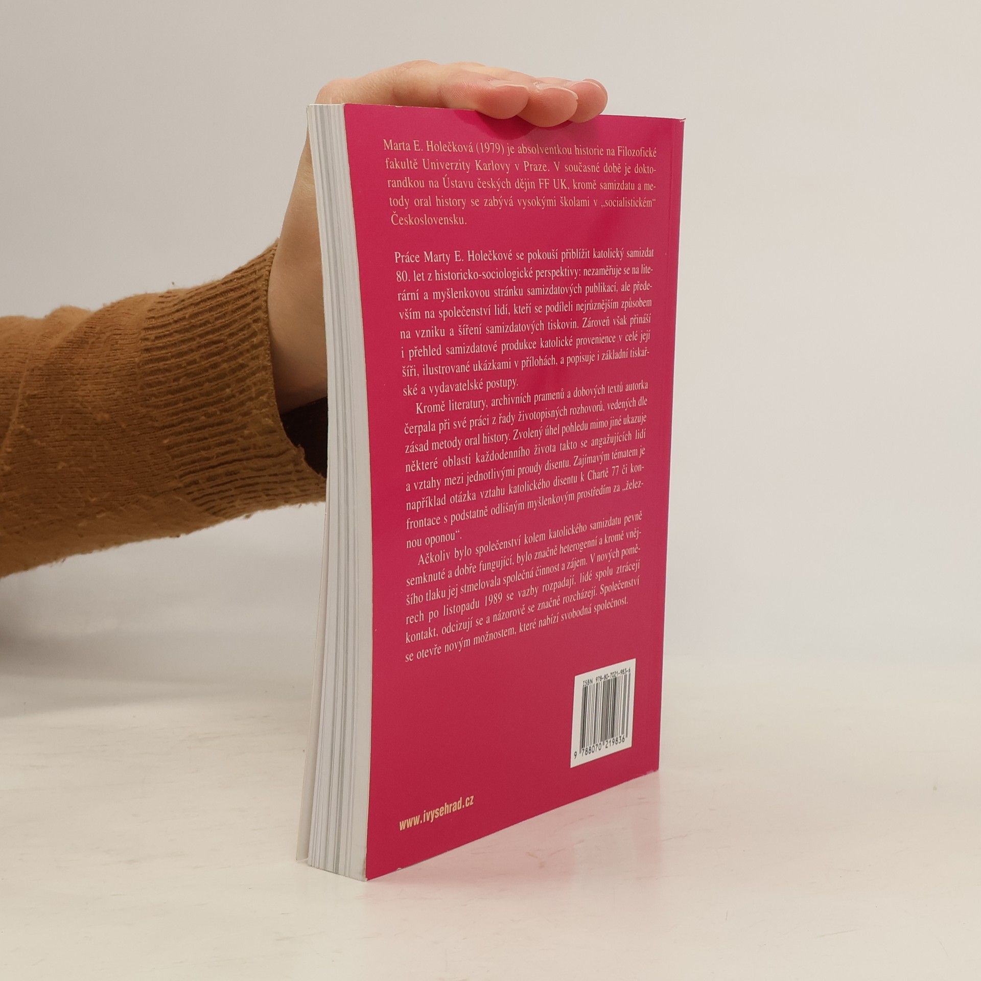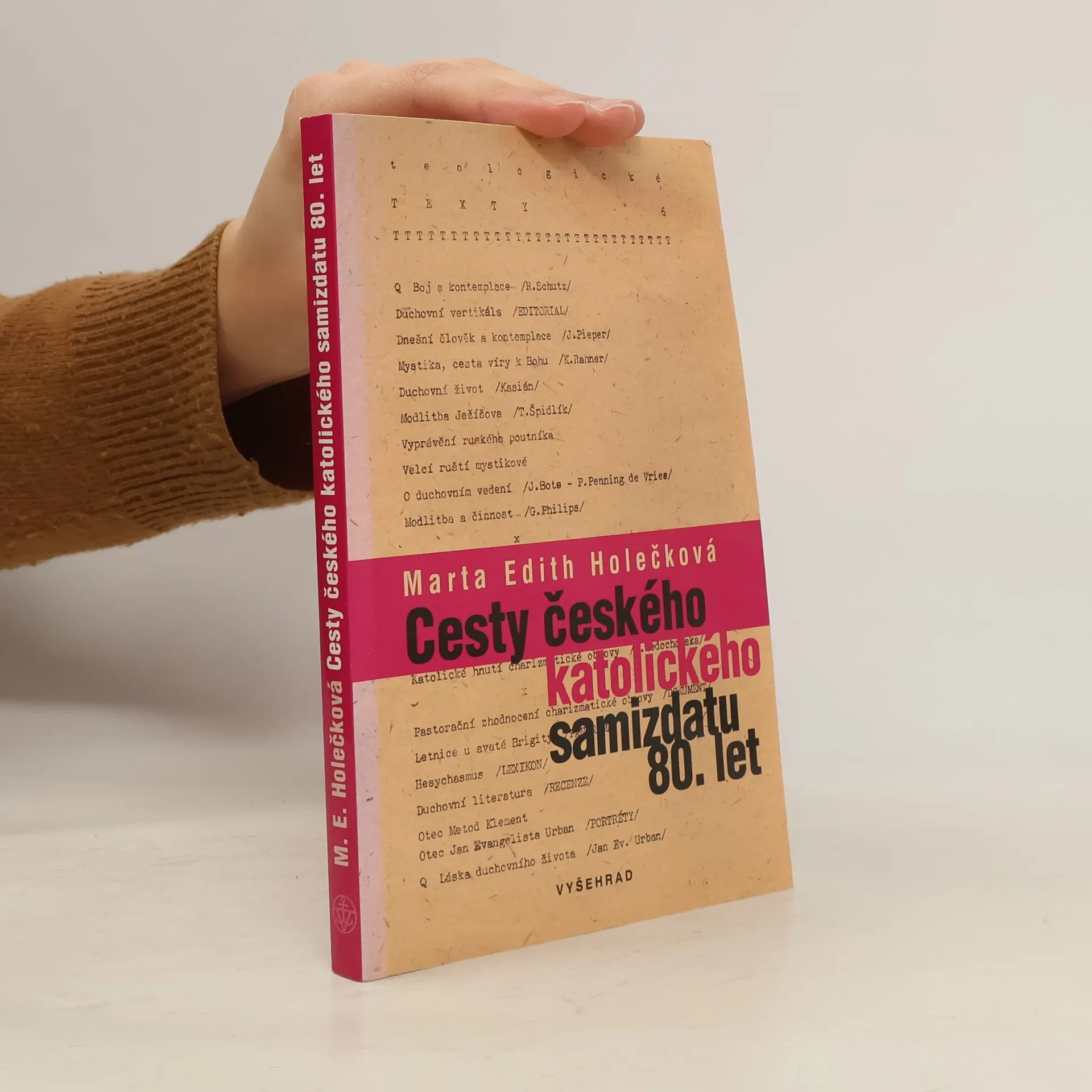Kniha se zaměřuje na katolický samizdat – neformální společenství lidí vznikající v souvislosti s vydavatelskými aktivitami a od konce 70. let stále aktivnější jako jedno z ohnisek nezávislého života v rámci katolické církve a celé „normalizační“ společnosti. Marta E. Holečková představuje samizdat především jako společenský fenomén, jádro její práce tvoří rozhovory se skupinou tvůrců a distributorů samizdatových tiskovin a publikací. Vzpomínky pamětníků přibližují nejen fungování nezávislých tiskáren a organizaci distribuční sítě, ale i úvahy o vztazích křesťanů a Charty 77, zkušenostech se zahraničím, vzájemným vztahům v „tichém společenství“ samizdatu. Vedle osobních svědectví autorka využila také dokumentů vzešlých z činnosti Stb, svědčících o jejím zájmu o tuto nepohodlnou skupinu obyvatel i o dopadu činnosti tajné policie na samizdatové aktivity. Knihu doplňují stručné životopisy vybraných osobností.