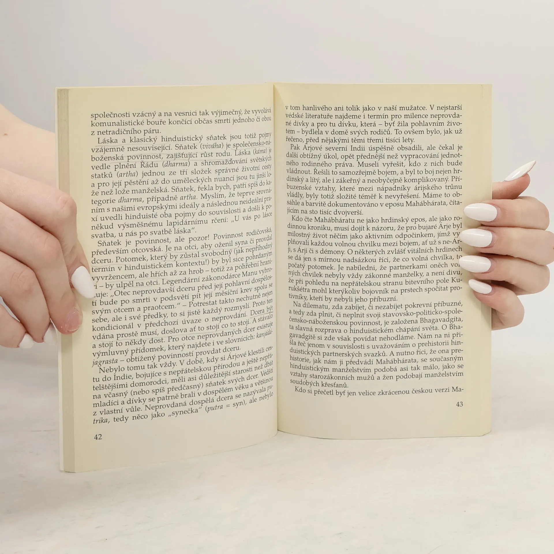 Vyprávění české indoložky provádí čtenáře hlavními etapami hinduistova života. Na pozadí tohoto vyprávění autorka konfrontuje indickou společnost s evropskou a popisuje specifické rysy indické kultury.