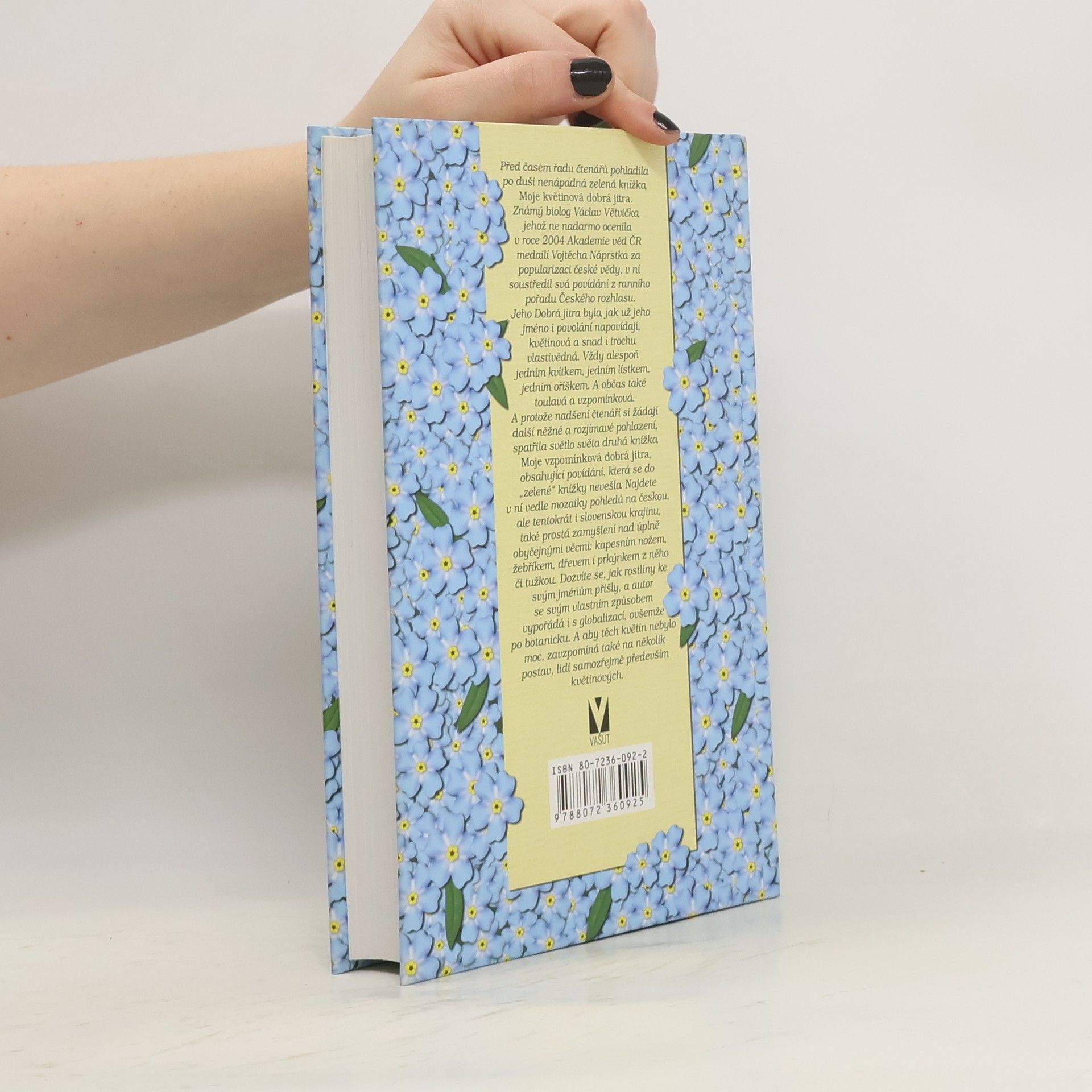 Před časem řadu čtenářů pohladila po duši nenápadná zelená knížka, Moje květinová dobrá jitra. Známý biolog Václav Větvička, jehož ne nadarmo ocenila v roce 2004 Akademie věd ČR medailí Vojtěcha Náprstka za popularizaci české vědy, v ní soustředil svá povídání z ranního pořadu Českého rozhlasu. Jeho Dobrá jitra byla, jak už jeho jméno i povolání napovídají, květinová a snad i trochu vlastivědná. Vždy alespoň jedním kvítkem, jedním lístkem, jedním oříškem. A občas také toulavá a vzpomínková. A protože nadšení čtenáři si žádají další něžné a rozjímavé pohlazení, spatřila světlo světa druhá knížka, Moje vzpomínková dobrá jitra, obsahující povídání, která se do zelené knížky nevešla. Najdete v ní vedle mozaiky pohledů na českou, ale tentokrát i slovenskou krajinu, také prostá zamyšlení nad úplně obyčejnými věcmi: kapesním nožem, žebříkem, dřevem i prkýnkem z něho či tužkou. Dozvíte se, jak rostliny ke svým jménům přišly, a autor se svým vlastním způsobem vypořádá i s globalizací, ovšemže po botanicku. A aby těch květin nebylo moc, zavzpomíná také na několik postav, lidí samozřejmě především květinových. Váz., 360 str., 130 x 200 mm