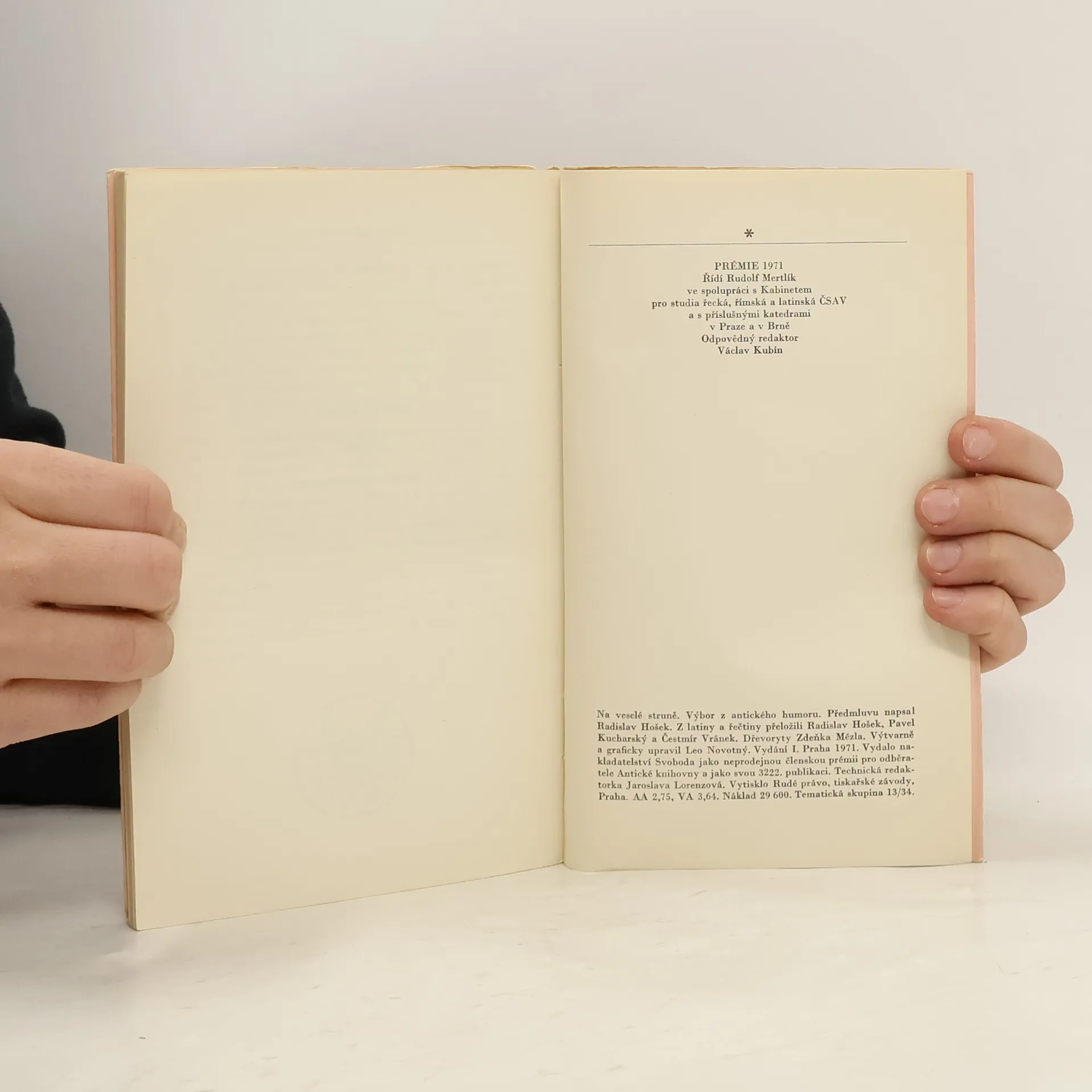Výbor z antického humoru, členská prémie Antické knihovny. Obsahuje anekdoty.