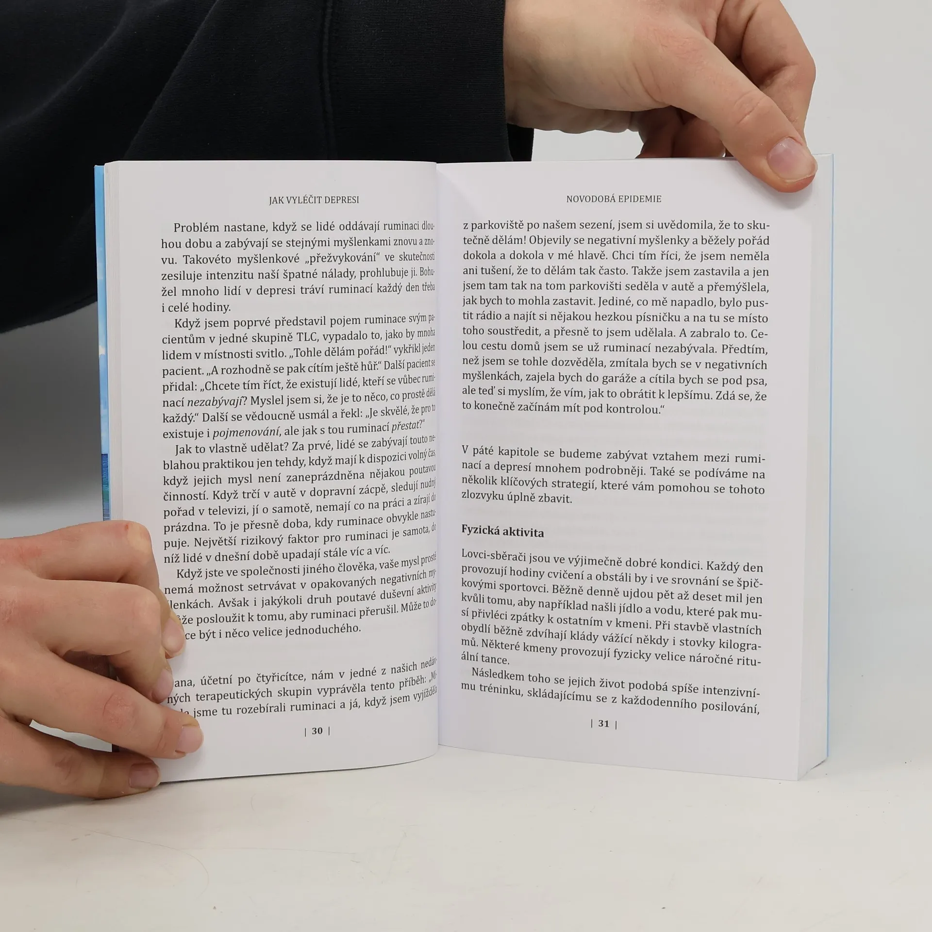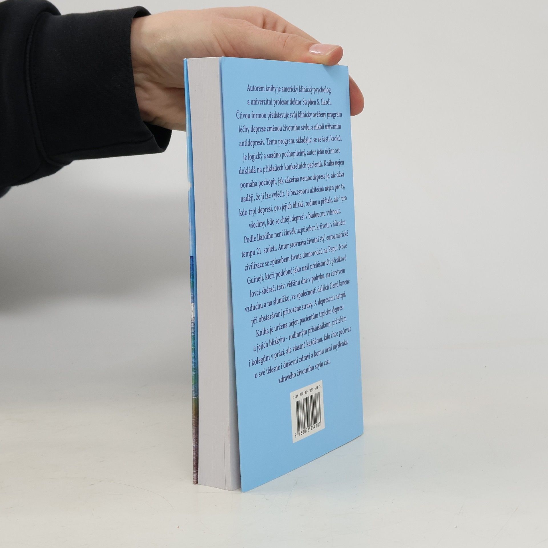Přehledná a srozumitelná kniha amerického klinického psychologa a univerzitního profesora doktora Stephena S. Ilardiho představuje klinicky ověřený program léčby deprese založený na změně životního stylu, a nikoli na užívání antidepresiv. Účinnost programu, který sestává ze šesti kroků, dokládá autor na příkladech konkrétních pacientů. Publikace nejen pomáhá pochopit, jak zákeřnou nemocí deprese je, ale dává naději, že ji lze léčit a vyléčit. Kniha může pomoci jak těm, kdo trpí depresí, tak jejich blízkým – rodině a přátelům, a v neposlední řadě všem, kdo se chtějí depresi ve svém životě vyhnout, chtějí pečovat o své duševní i tělesné zdraví a myšlenka zdravého životního stylu jim není cizí. Ilardi tvrdí, že člověk není uzpůsoben pro zběsilé tempo 21. století. Životní styl euroamerické civilizace srovnává se způsobem života domorodců na Papui Nové Guinei, kteří podobně jako naši prehistoričtí předkové lovci-sběrači tráví většinu dne v pohybu na vzduchu a na slunci, kde si ve společnosti dalších členů kmene obstarávají přirozenou stravu. A depresi neznají.