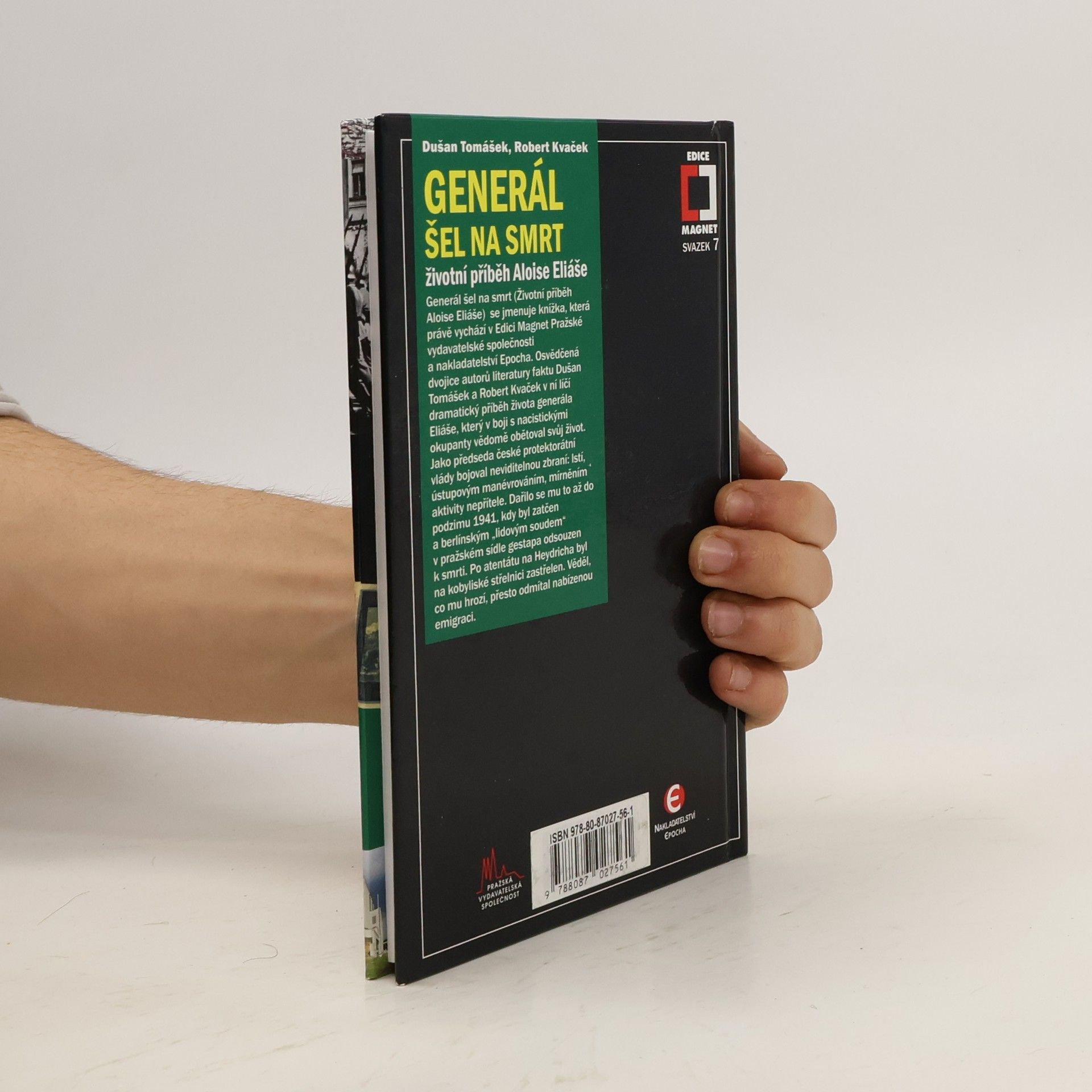 Příběh za druhé světové války ojedinělý - poprava předsedy vlády země okupované Němci! Hitlerovci se jí dopustili v červnu 1942 na pražské střelnici v Kobylisích. Na rozdíl od stalinistů nacisté, jisti si svým vítězstvím, se podobnými vraždami veřejně chlubili! Alois Eliáš nebojoval běžnými zbraněmi jako nejznámější hrdinové odboje Morávek, Mašín a Balabán. Jeho zbraní byla vojenská lest, předstírání a oddalování, získávání času a snaha o narušení záměrů protivníka. Za těžkých podmínek udržoval rádiové i kurýrní spojení se svým vrchním velitelem prezidentem Benešem v Londýně, a využíval i dřívější známosti s protektorem Neurathem z mírových jednání v Ženevě. Svedl nejeden „ústupový“ boj se svým protivníkem K. H. Frankem. Byl si vědom toho, že mu hrozí smrt. Jiným pomohl k emigraci, ale sám nabídku emigrovat odmítl, že tam už je generálů dost. Zatčen byl v den výměny protektora Neuratha Reinhardem Heydrichem koncem září 1941 a německým tribunálem odsouzen k smrti. Zemřel jako hrdina. Odmítl šátek přes oči a díval se upřeně na své vrahy.
