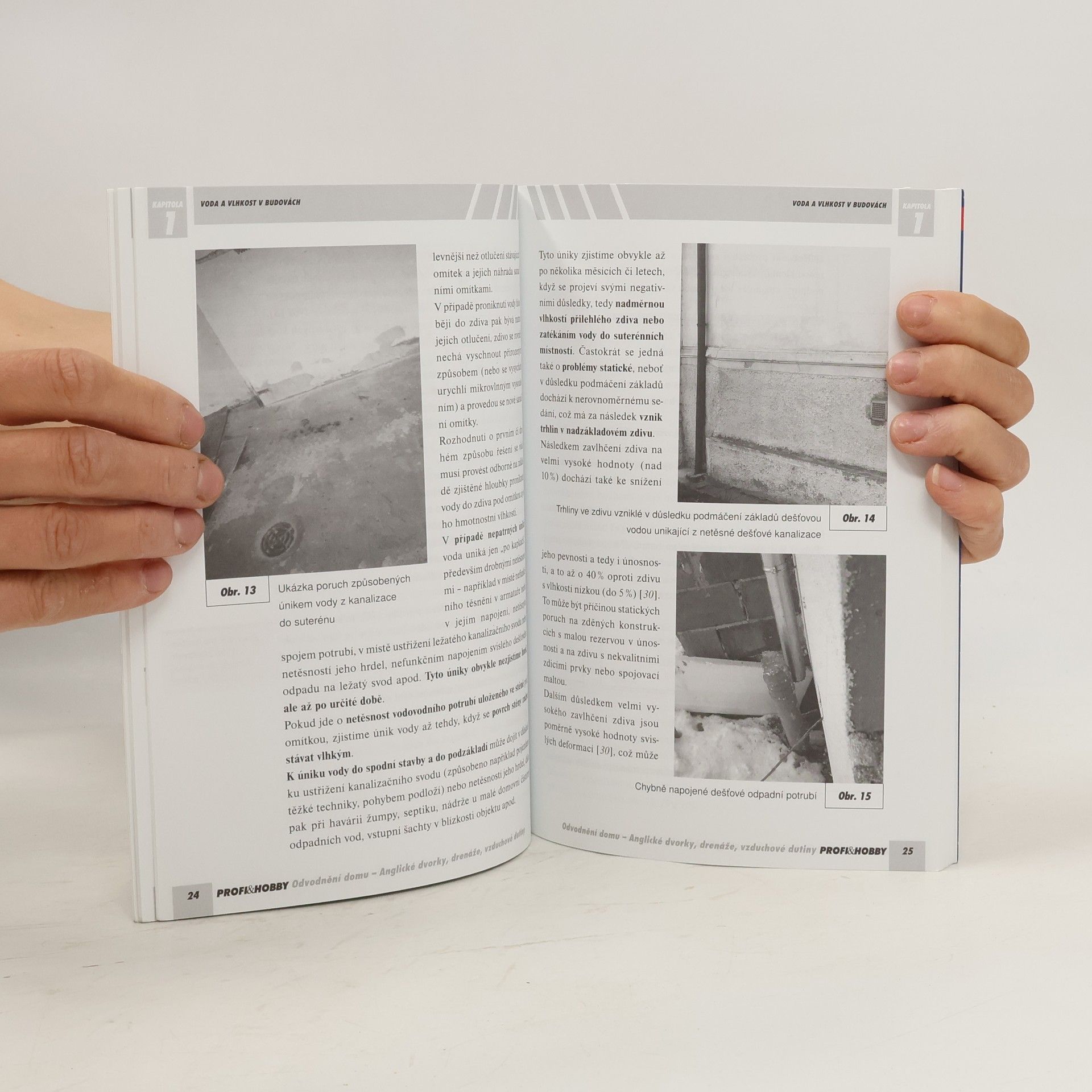 Hlavním tématem knihy jsou poruchy způsobené volnou vodou na konstrukci stavby a návrhy, řešení a realizace stavebních opatření proti vodě. Klasickým opatřením proti vnikání vody do zdiva jsou anglické dvorky a odvodňovací i větrací systémy na úrovni terénu a pod ním, jako jsou drenáže, vzduchové dutiny, bariéry proti vodě apod. Kniha je určena pro majitele a uživatele nemovitostí i pracovníky stavebních firem. 1. vydání.