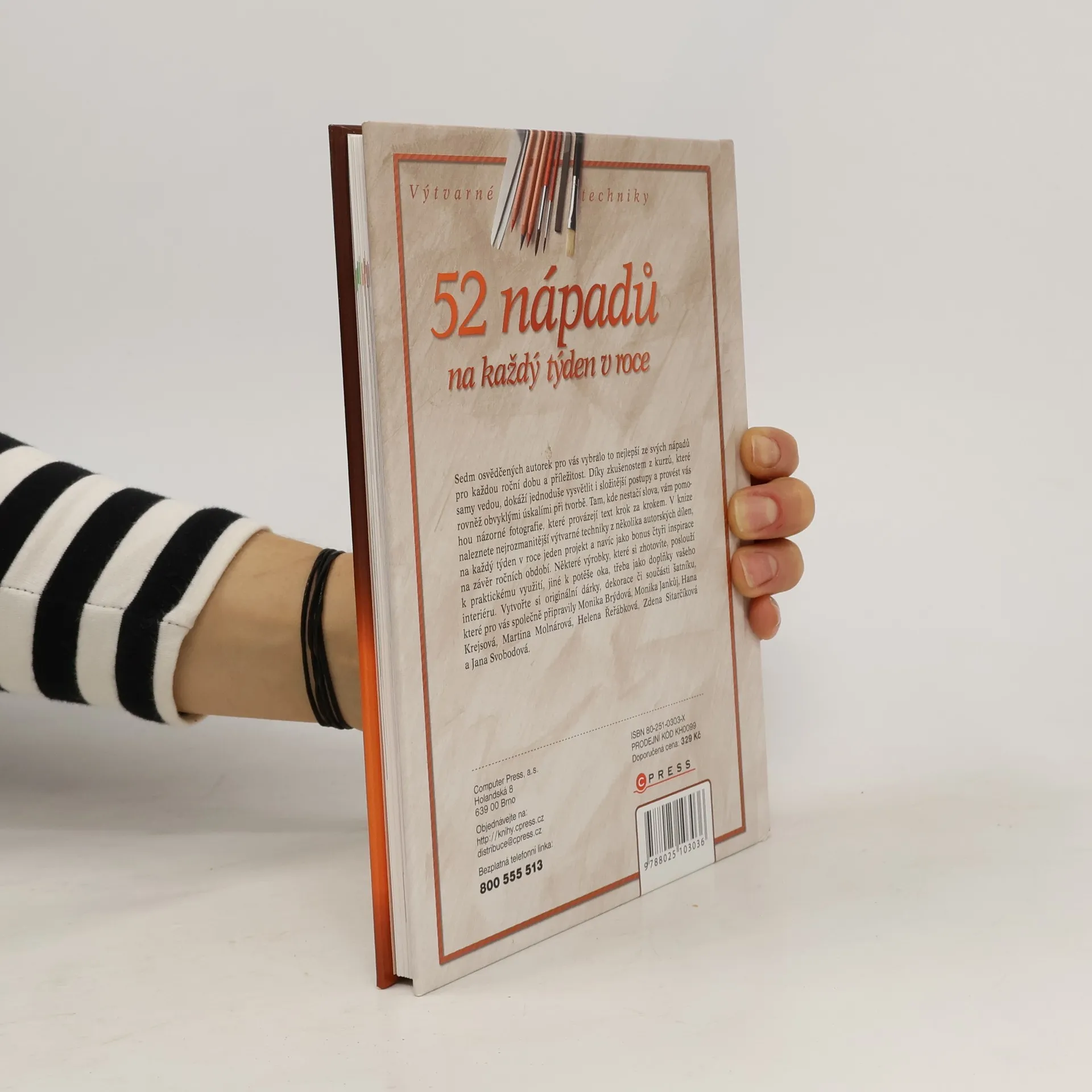 Sedm osvědčených autorek pro vás vybralo to nejlepší ze svých nápadů pro každou roční dobu a příležitost. Díky zkušenostem z kurzů, které samy vedou, dokáží jednoduše vysvětlit i složitější postupy a provést vás rovněž obvyklými úskalími při tvorbě. Tam, kde nestačí slova, vám pomohou názorné fotografie, které provázejí text krok za krokem. V knize naleznete nejrozmanitější výtvarné techniky z několika autorských dílen, na každý týden v roce jeden projekt a navíc jako bonus čtyři inspirace na závěr ročních období. Některé výrobky, které si zhotovíte, poslouží k praktickému využití, jiné k potěše oka, třeba jako doplňky vašeho interiéru. Vytvořte si originální dárky, dekorace či součásti šatníku, které pro vás společně připravily Monika Brýdová, Monika Jankůj, Hana Krejsová, Martina Molnárová, Helena Řeřábková, Zdena Sitarčíková a Jana Svobodová... celý text