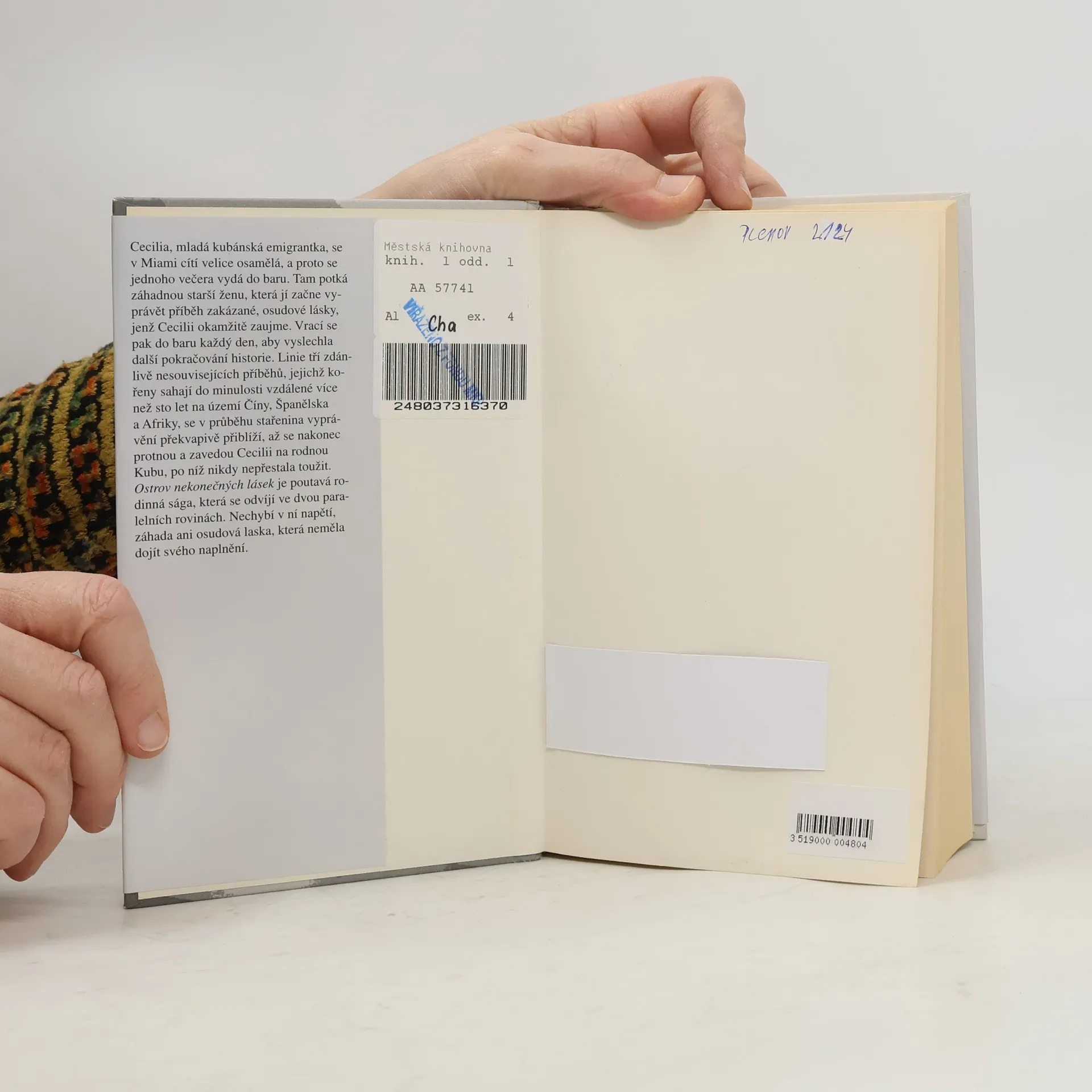 Cecilia, mladá kubánská emigrantka, se v Miami cítí velice osamělá, a proto se jednoho večera vydá do baru. Tam potká záhadnou starší ženu, která jí začne vyprávět příběh zakázané, osudové lásky, jenž Cecilii okamžitě zaujme. Vrací se pak do baru každý den, aby vyslechla další pokračování historie. Linie tří zdánlivě nesouvisejících příběhů, jejichž kořeny sahají do minulosti vzdálené více než sto let na území Číny, Španělska a Afriky, se v průběhu stařenina vyprávění překvapivě přiblíží, až se nakonec protnou a zavedou Cecilii na rodnou Kubu, po níž nikdy nepřestala toužit. Ostrov nekonečných lásek je poutavá rodinná sága, která se odvíjí ve dvou paralelních rovinách. Nechybí v ní napětí, záhada ani osudová laska, která neměla dojít svého naplnění.