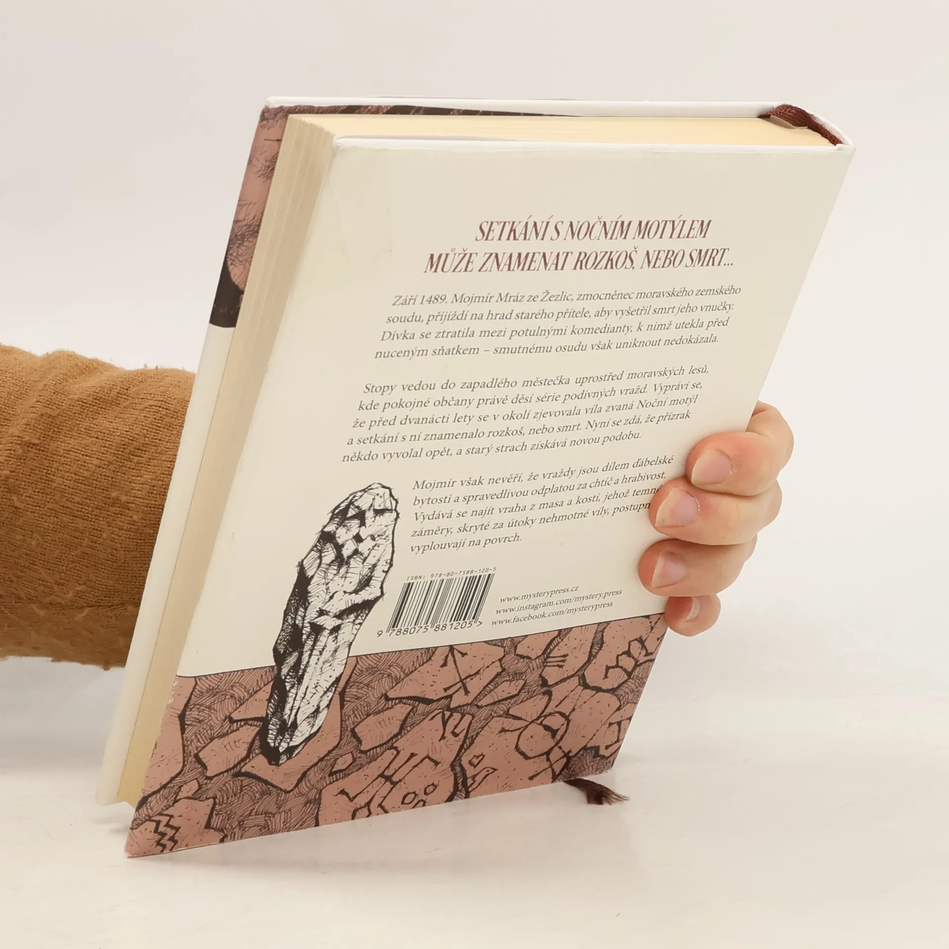 SETKÁNÍ S NOČNÍM MOTÝLEM MŮŽE ZNAMENAT ROZKOŠ, NEBO SMRT… Září 1489. Mojmír Mráz ze Žezlic, zmocněnec moravského zemského soudu, přijíždí na hrad starého přítele, aby vyšetřil smrt jeho vnučky. Dívka se ztratila mezi potulnými komedianty, k nimž utekla před nuceným sňatkem – smutnému osudu však uniknout nedokázala. Stopy vedou do zapadlého městečka uprostřed moravských lesů, kde pokojné občany právě děsí série podivných vražd. Vypráví se, že před dvanácti lety se v okolí zjevovala víla zvaná Noční motýl a setkání s ní znamenalo rozkoš, nebo smrt. Nyní se zdá, že přízrak někdo vyvolal opět, a starý strach získává novou podobu. Mojmír však nevěří, že vraždy jsou dílem ďábelské bytosti a spravedlivou odplatou za chtíč a hrabivost. Vydává se najít vraha z masa a kostí, jehož temné záměry, skryté za útoky nehmotné víly, postupně vyplouvají na povrch.