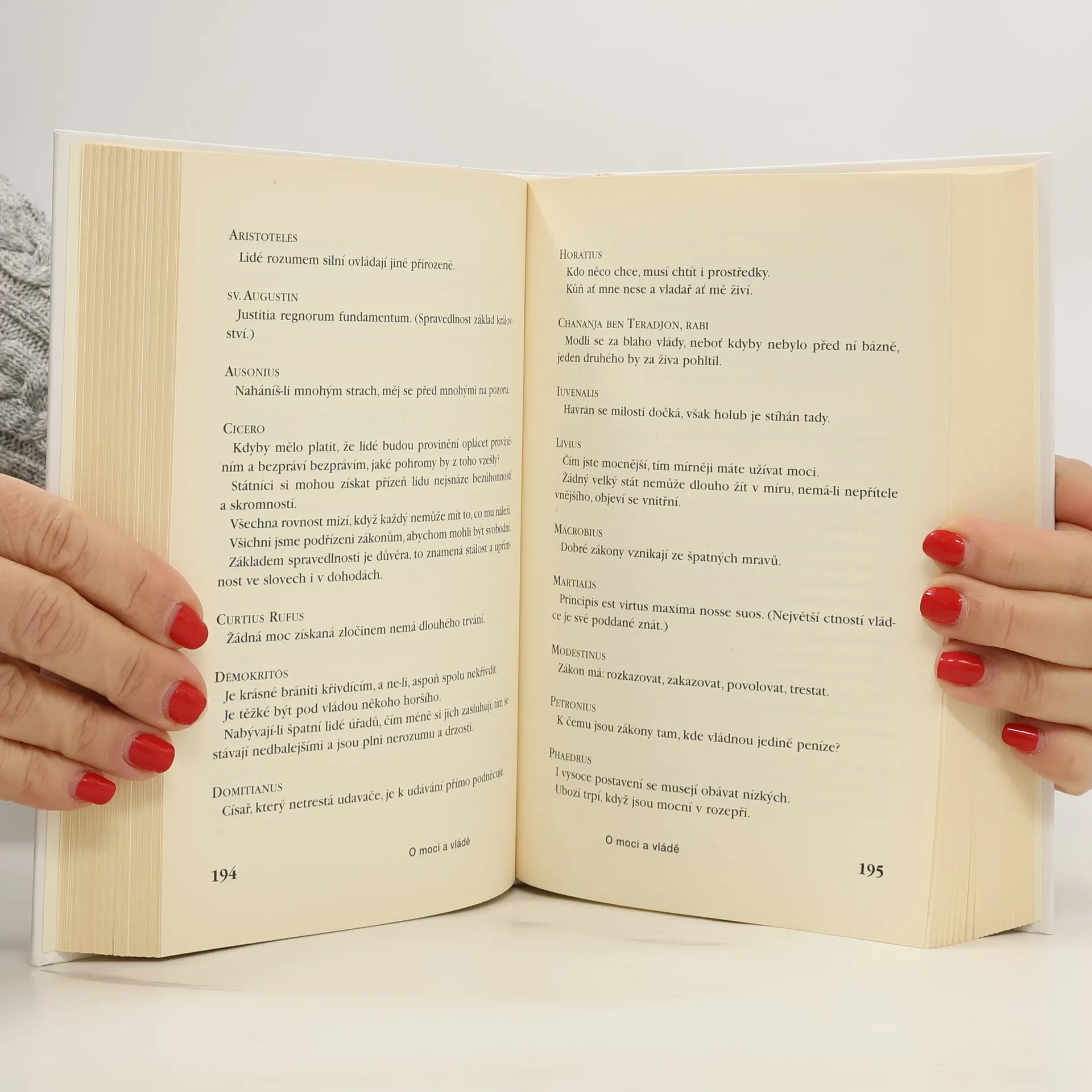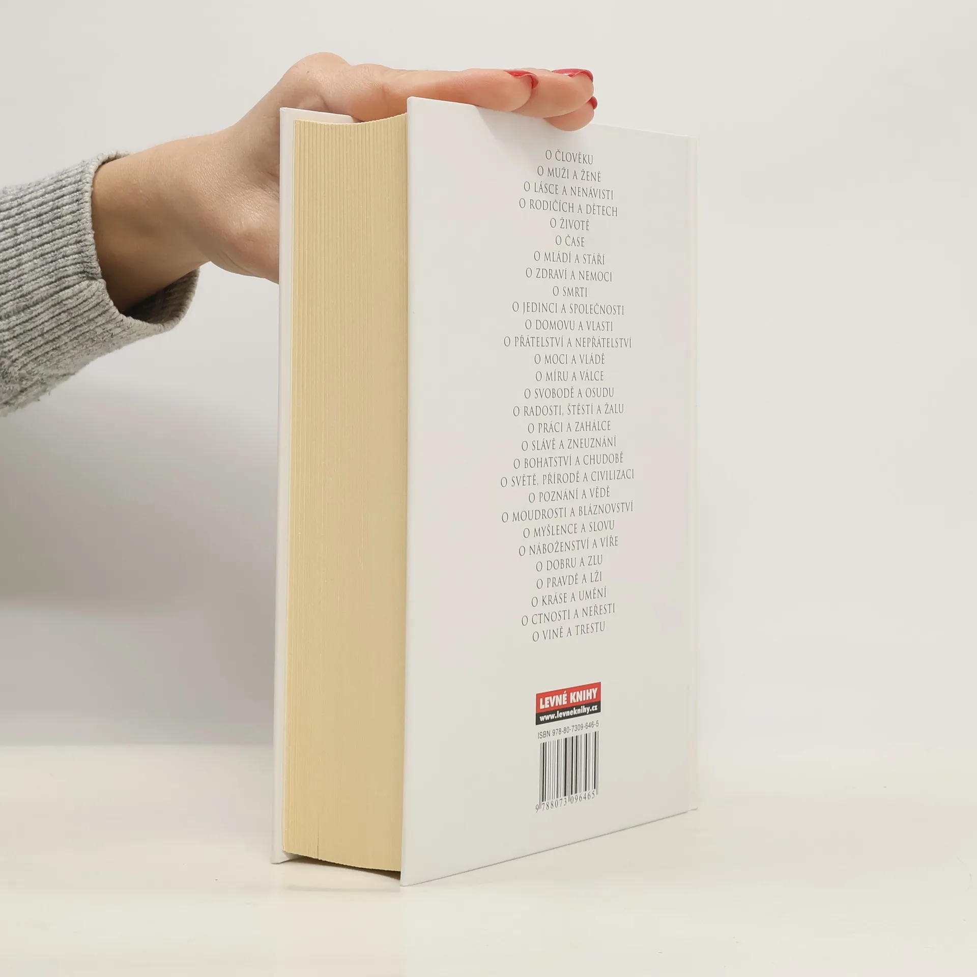 Kniha obsahuje nepřeberné množství citátů, sentencí a aforismů, které vyslovily či napsaly největší osobnosti lidských dějin. Kniha je rozdělena do kapitol dle předmětu úvahy: O člověku, O muži a ženě, O lásce a nenávisti, O rodičích a dětech, O životě, O čase, O mládí a stáří, O zdraví a nemoci a mnoho dalších.