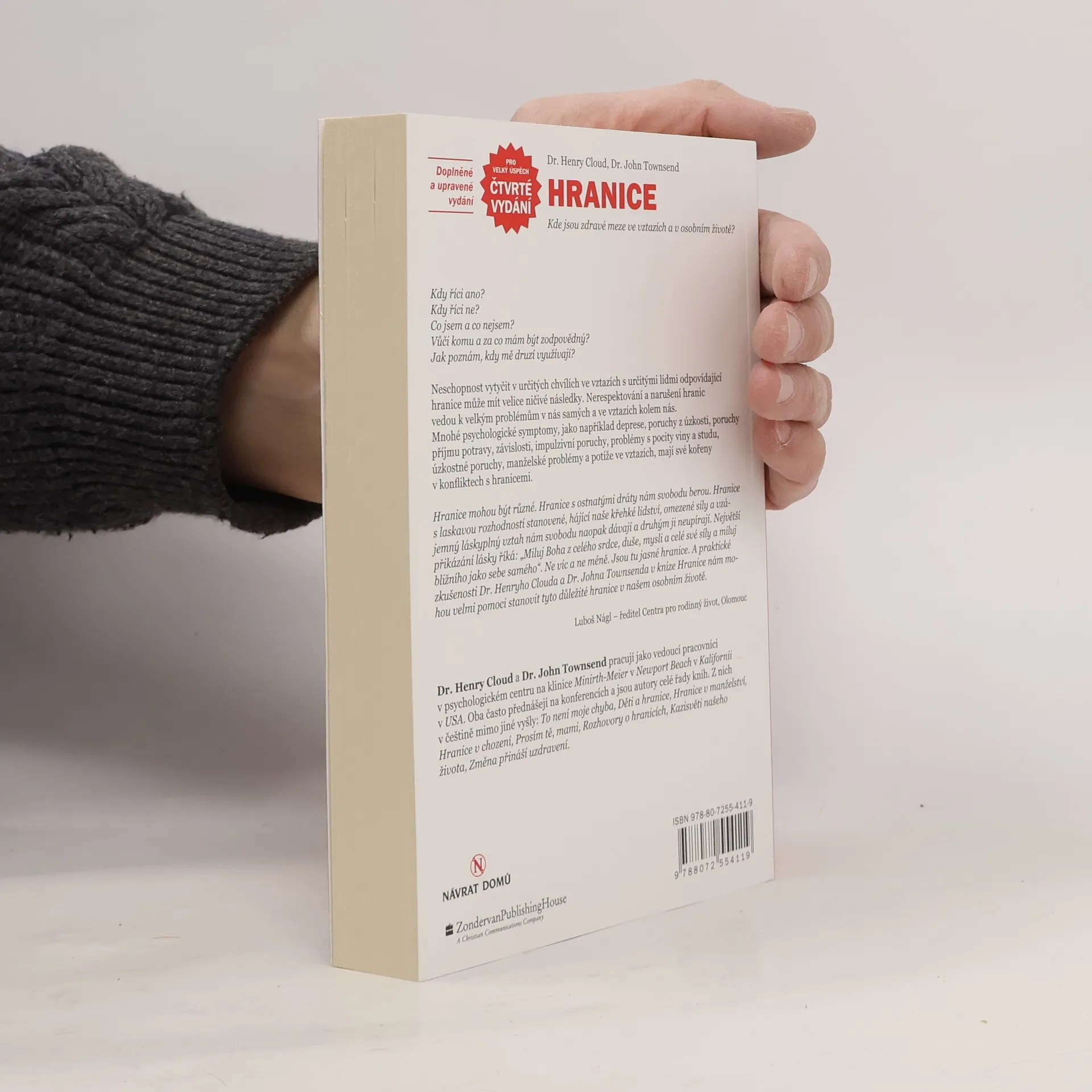 Kdy říci ano? Kdy říci ne? Co jsem a co nejsem? Vůči komu a za co mám být zodpovědný? Jak poznám, kdy mě druzí využívají? Neschopnost vytyčit v určitých chvílích ve vztazích s určitými lidmi odpovídající hranice může mít velice ničivé následky. Nerespektování a narušení hranic vedou k velkým problémům v nás samých a ve vztazích kolem nás. Mnohé psychologické symptomy, jako například deprese, poruchy z úzkosti, poruchy příjmu potravy, závislosti, impulzivní poruchy, problémy s pocity viny a studu, úzkostné poruchy, manželské problémy a potíže ve vztazích, mají své kořeny v konfliktech s hranicemi.