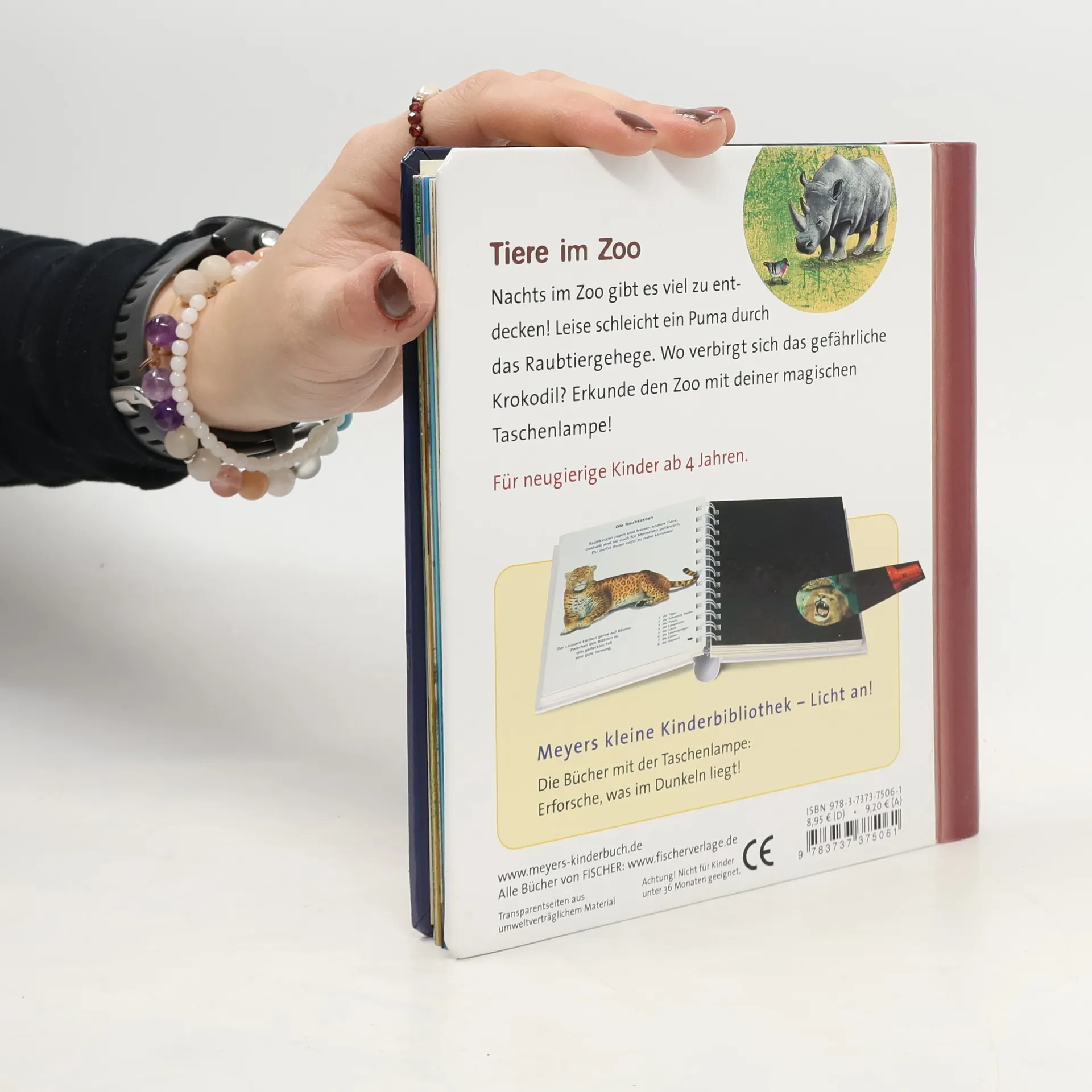 In der spannenden Sachbilderbuchreihe „Meyers kleine Kinderbibliothek – Licht an!“ entdecken kleine Forscher, was normalerweise im Dunkeln liegt. Mit der beiliegenden „Taschenlampe“ aus Papier können Kinder ab 4 Jahren unter den Entdeckerfolien gezielt bunte Szenen „beleuchten“ und in verborgene Welten eintauchen. In diesem Band lernen Kinder spielerisch, welche Tiere man im Zoo bewundern kann, welche Raubkatzen, Steppentiere, Vögel, Affen und Wassertiere es gibt, was ihre besonderen Merkmale sind, was ein Terrarium ist und welche Tiere dort gehalten werden.