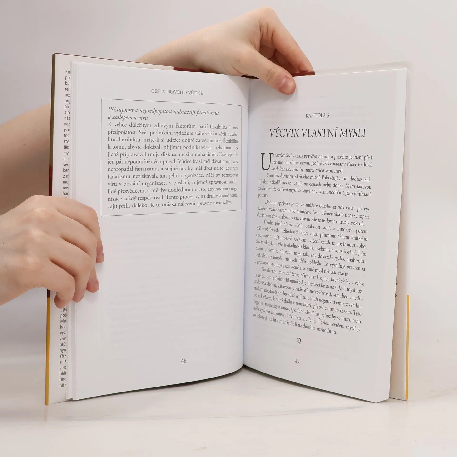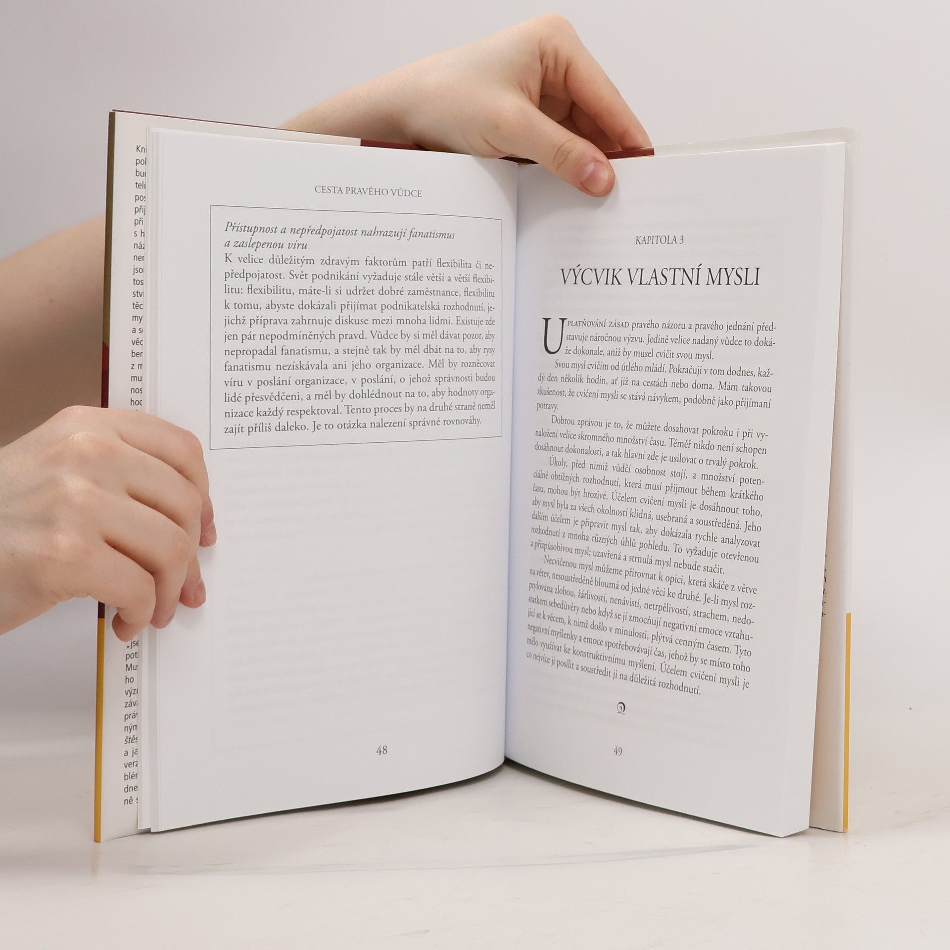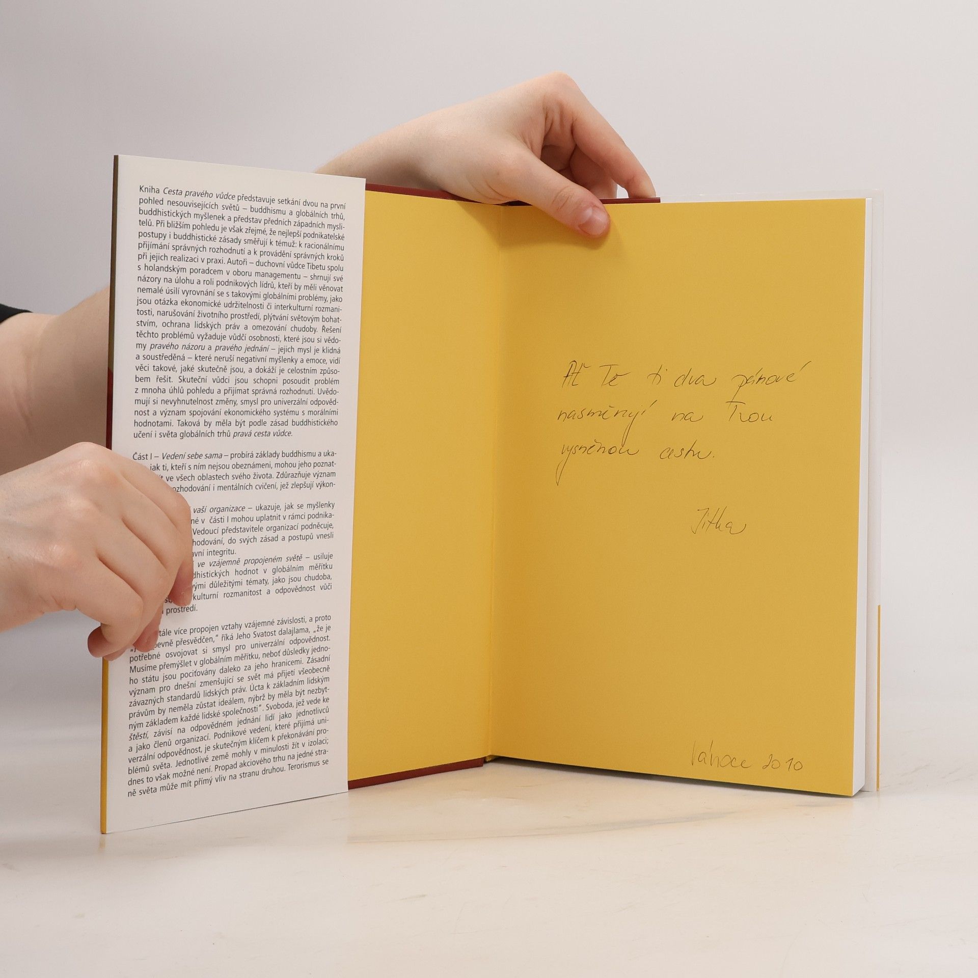 Jedinečná kniha duchovní autority tibetského buddhismu, hlavního představitele tibetské exilové vlády a nizozemského konzultanta v oboru mezinárodního managementu představuje setkání dvou na první pohled nesouvisejících světů – buddhismu a globálních trhů. Při bližším pohledu je však zřejmé, že nejlepší podnikatelské postupy i buddhistické zásady směřují k témuž: k racionálnímu přijímání správných rozhodnutí a k efektivnímu provádění správných praktických kroků. To je i základem pravé cesty vůdčí osobnosti, která chápe vzájemnou provázanost podnikových organizací, jednotlivých zemí a ekonomického systému a nevyhnutelnost změn a v souladu s tím i odpovědně jedná.