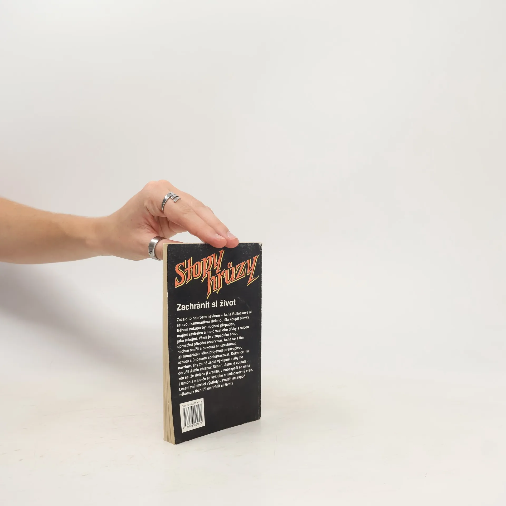 Stopy hrůzy 104, ze série Prokletá škola. Začalo to naprosto nevinně – Asha Bullocková si se svou kamarádkou Helenou šla koupit plavky. Během nákupu byl obchod přepaden, majitel zastřelen a lupič vzal obě dívky s sebou jako rukojmí. Vězní je v zapadlém srubu uprostřed přírodní reservace. Asha se s tím nechce smířit a pokouší se uprchnout, její kamarádka však projevuje překvapivou ochotu s únoscem spolupracovat. Dokonce mu navrhne, aby za ně žádal výkupné a aby ho doručil Ashin otec Simon. Asha je zoufalá – zdá se, že Helena jí zradila, v nebezpečí se ocitá i Simon a z lupiče se vyklube chladnokrevný vrah. Lesem zní smrtící výstřely… Podaří se aspoň někomu z těch tří zachránit si život?