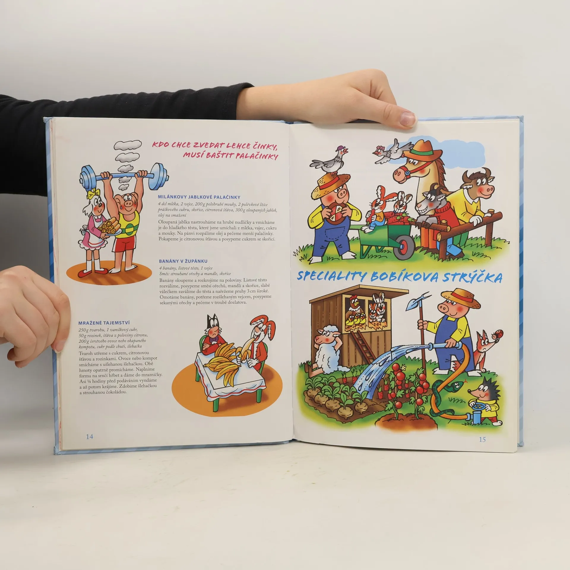 Co dobrého nám připraví kamarádi ze Čtyřlístku. Osvědčení autoři našich kuchařek M. Šebestová a J. Němeček připravili pro děti další kuchařku, na jejichž receptech se tentokrát kromě Čtyřlístku podíleli i jejich příbuzní – Fifinčina babička, Bobíkův strýček, Pinďova tetička a Myšpulínův bratr. Samozřejmě, že recepty jsou takové, aby z nich jídlo, nápoje, poháry a další výrobky snadno připravily děti. Na každé stránce knížky jsou kouzelné kresby p. Němečka z pestrého života Čtyřlístku a mnoha jejich zvířecích kamarádu.