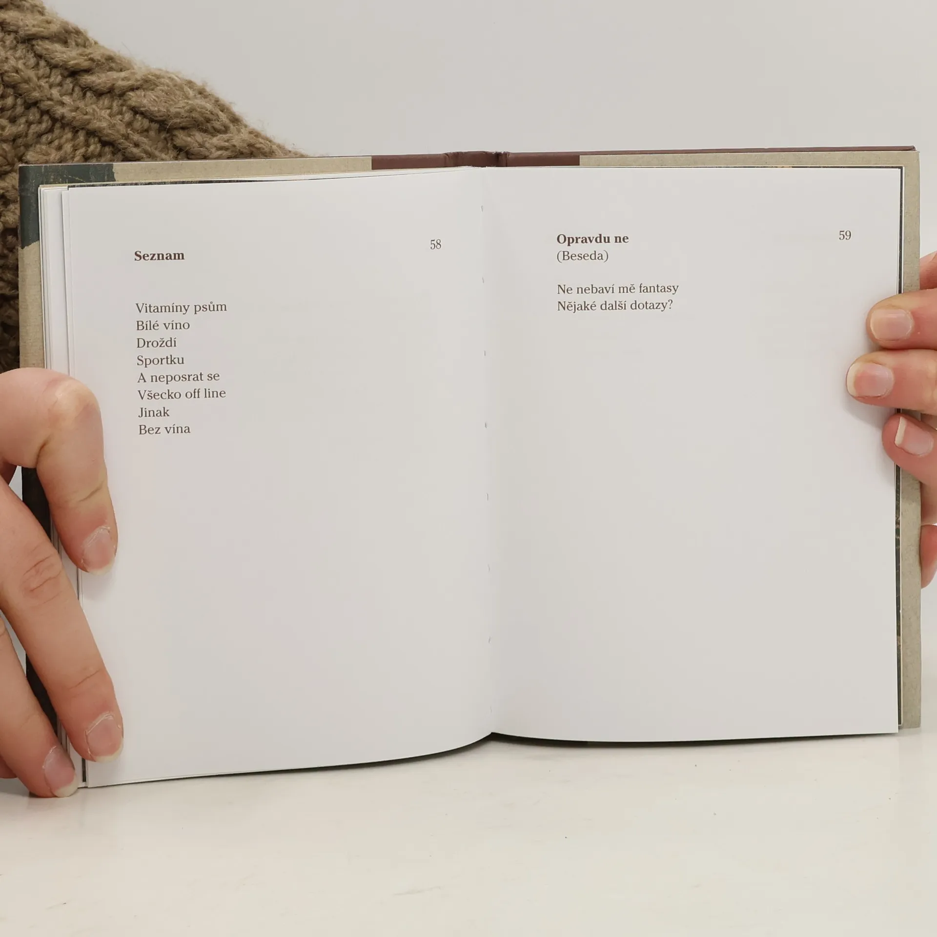 Navzdory verši nevstoupila bych do třinácté komnaty, právě v tolikáté komnatě, zdá se, Irena Dousková sbírku Bez Karkulky napsala. Ač básním neschází zlehčující vtip, chvějí se permanentní úzkostí z poněkud absurdního a poněkud krutého světa, do něhož jsme netázáni vrženi a z něhož jsme posléze opět vyvrhováni — snad jen bůh ví proč a kam. A není to úzkost jen dosebehledící, nýbrž i soucítící: Pořád se vracím do bodu nula / Bod nula / je mínus šest milionů. Dousková je však i básnířkou naděje: byť zdá se začasté vše ztraceno, ne-li rovnou zatraceno, přesto modlit se nepřestanu.