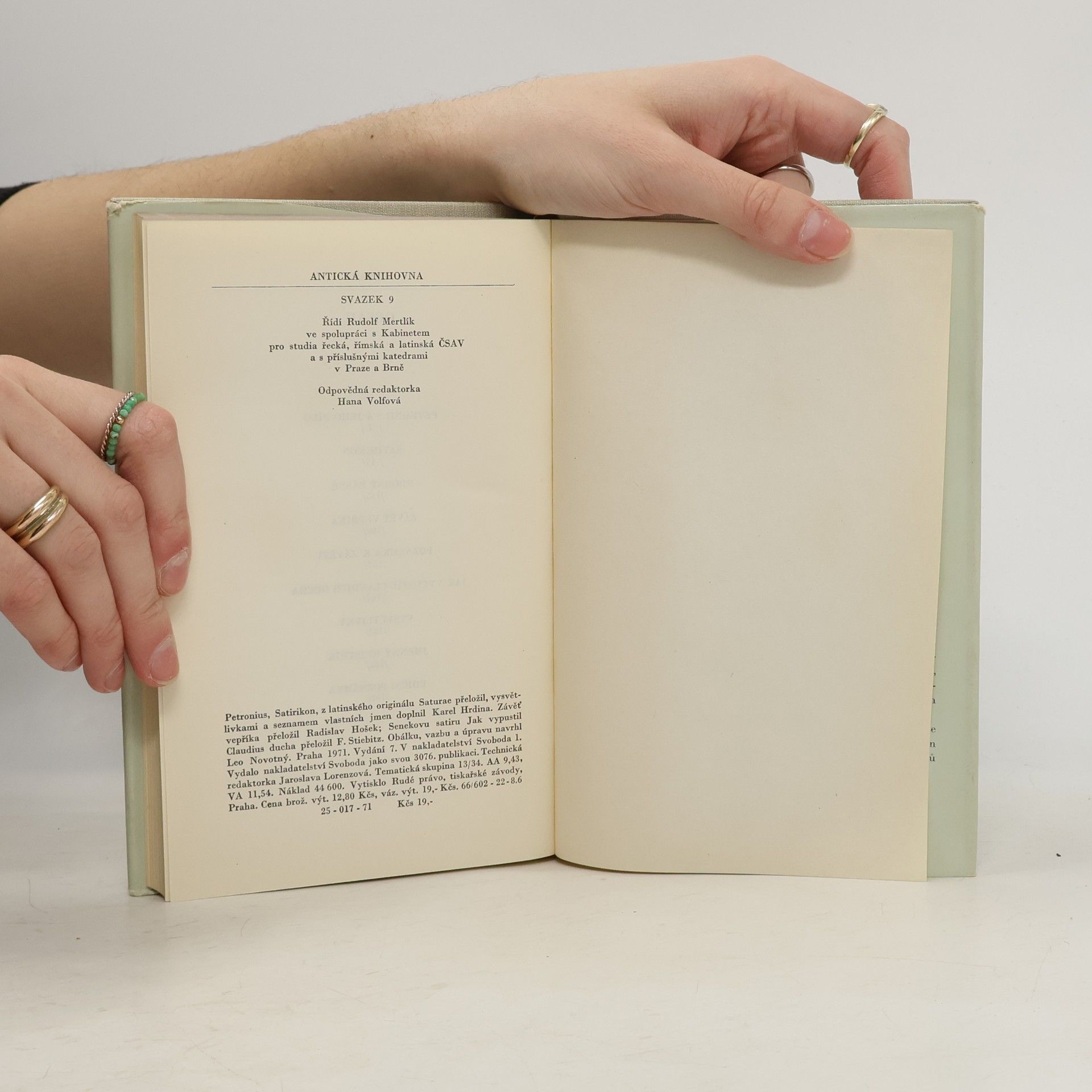 Satirikon je dodnes jedním z nejvýstižnějších obrazů úpadkového římského světa. Petronius, ten citlivý znalec všeho krásného, tu ironizuje nikoli pouze mělké veršotepce a řemeslné rétory, ale i vážné nedostatky sociální: úplatné úředníky a soudce, podvodné hodnostáře, nevkus i nemorálnost zbohatlické "vyšší" společnosti, ovládané jedině mocí peněz. Je mu ovšem cizí kritika sebeméně zavánějící didaktikou. Prostředkem jeho odsouzení je humor, ironie, ostrá karikatura postav z nejrůznějších vrstev společnosti císařského Říma, kde dřívější etické normy byly nahrazeny právem silnějšího a hladem po požitku a zásady občanského soužití sobeckou vypočítavostí a prohnaností. Svazek obsahuje Satirikon, drobné básně, anonymní satiru Závěť vepříka a Senekův pamflet Jak vypustil Claudius ducha.