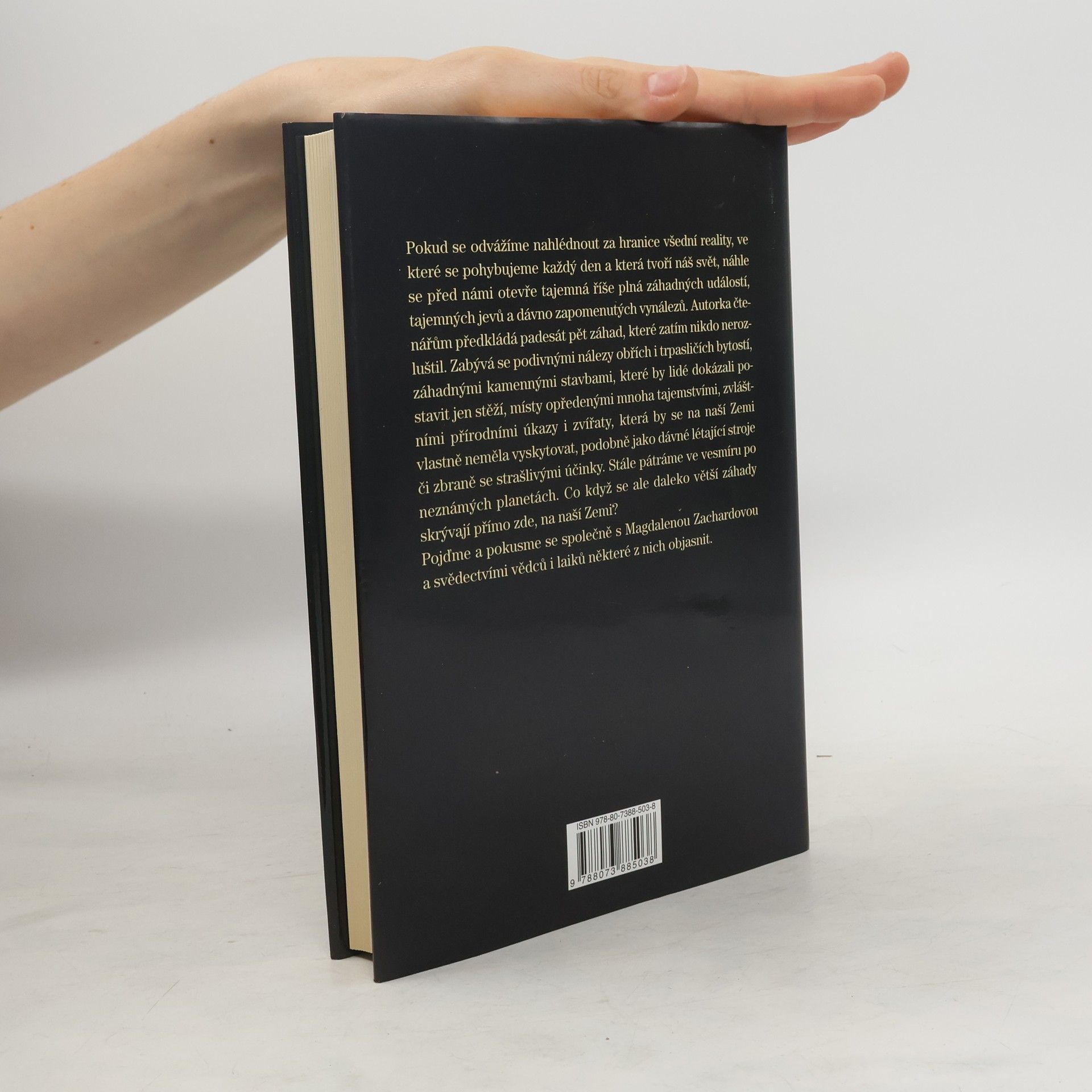 Pokud se odvážíme nahlédnout za hranice všední reality, ve které se pohybujeme každý den a která tvoří náš svět, náhle se před námi otevře tajemná říše plná záhadných událostí, tajemných jevů a dávno zapomenutých vynálezů. Autorka čtenářům předkládá padesát pět záhad, které zatím nikdo nerozluštil. Zabývá se podivnými nálezy obřích i trpasličích bytostí, záhadnými kamennými stavbami, které by lidé dokázali postavit jen stěží, místy opředenými mnoha tajemstvími, zvláštními přírodními úkazy i zvířaty, která by se na naší Zemi vlastně neměla vyskytovat, podobně jako dávné létající stroje či zbraně se strašlivými účinky. Stále pátráme ve vesmíru po neznámých planetách. Co když se ale daleko větší záhady skrývají přímo zde, na naší Zemi? Pojďme a pokusme se společně s Magdalenou Zachardovou a svědectvími vědců i laiků některé z nich objasnit.