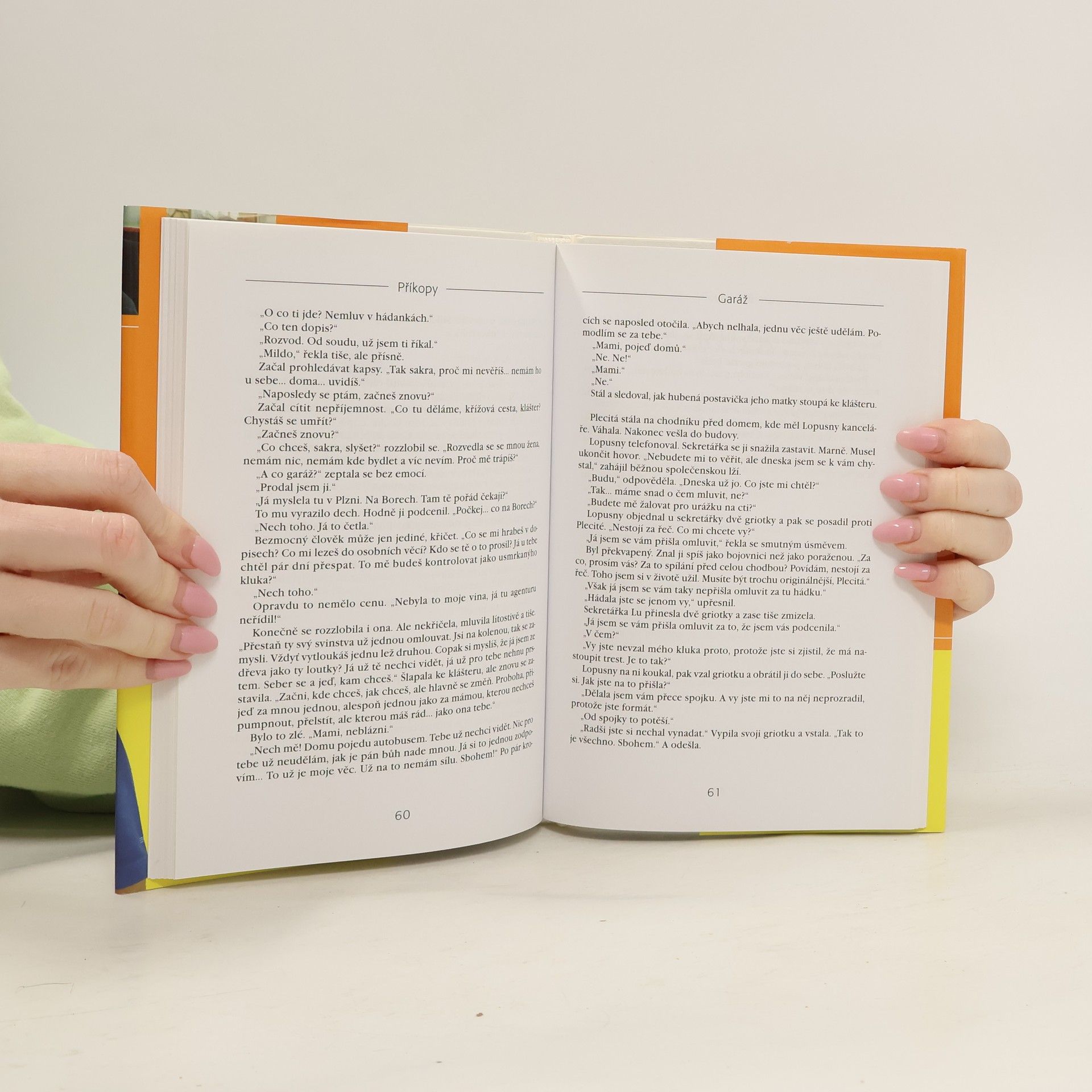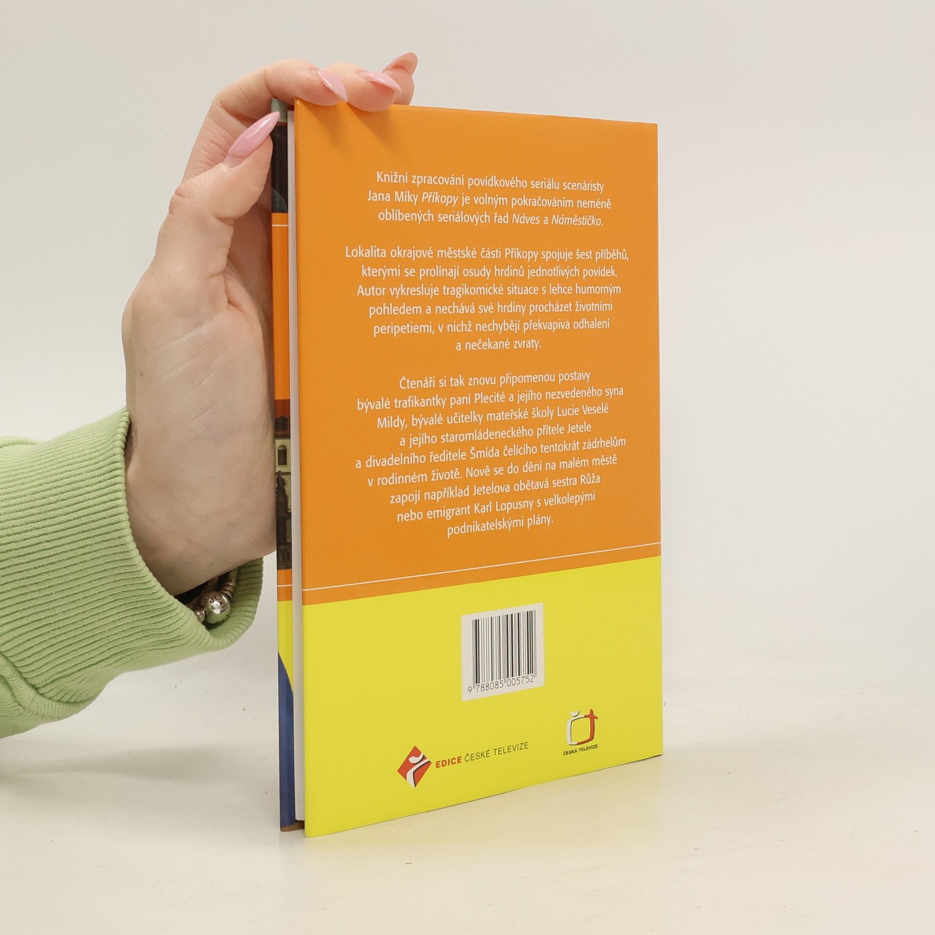 Knižní zpracování povídkového seriálu scenáristy Jana Míky Příkopy je volným pokračováním neméně oblíbených seriálových řad Náves a Náměstíčko. Lokalita okrajové městské části Příkopy spojuje šest příběhů, kterými se prolínají osudy hrdinů jednotlivých povídek. Autor vykresluje tragikomické situace s lehce humorným pohledem a nechává své hrdiny procházet životními peripetiemi, v nichž nechybějí překvapivá odhalení a nečekané zvraty. Čtenáři si tak znovu připomenou postavy bývalé trafikantky paní Plecité a jejího nezvedeného syna Mildy, bývalé učitelky mateřské školy Lucie Veselé a jejího staromládeneckého přítele Jetele a divadelního ředitele Šmída čelícího tentokrát zádrhelům v rodinném životě. Nově se do dění na malém městě zapojí například Jetelova obětavá sestra Růža nebo emigrant Karl Lopusny s velkolepými podnikatelskými plány.