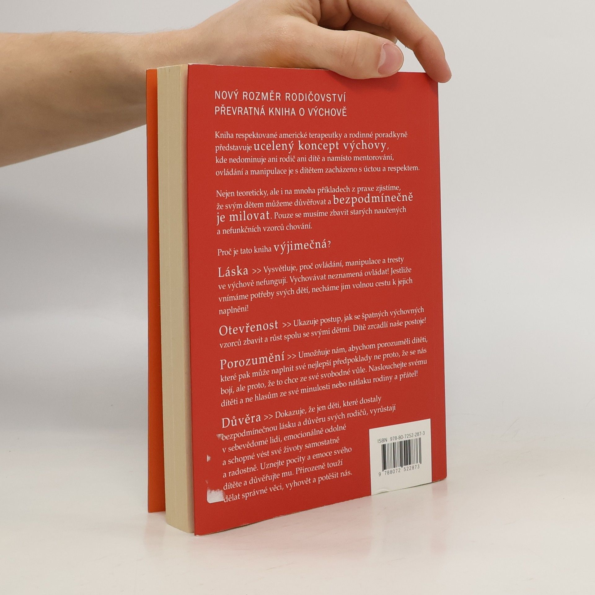 Kniha respektované americké terapeutky a rodinné poradkyně představuje ucelený koncept výchovy, kde nedominuje ani rodič ani dítě a namísto mentorování, ovládání a manipulace je s dítětem zacházeno s úctou a respektem. Nejen teoreticky, ale i na mnoha příkladech z praxe zjistíme, že svým dětem můžeme důvěřovat a bezpodmínečně je milovat. Pouze se musíme zbavit starých naučených a nefunkčních vzorců chování. Proč je tato kniha výjimečná? láska- vysvětluje, proč ovládání, manipulace a tresty ve výchově nefungují. otevřenost- ukazuje postup, jak se špatných výchovných vzorců zbavit a růst spolu se svými dětmi. porozumění- umožňuje nám, abychom porozuměli dítěti, které pak může naplnit své nejlepší předpoklady. důvěra- dokazuje, že jen děti, které dostaly bezpodmínečnou lásku a důvěru svých rodičů, vyrůstají v sebevědomé lidi, emocionálně odolné a schopné vést své životy samostatně a radostně.