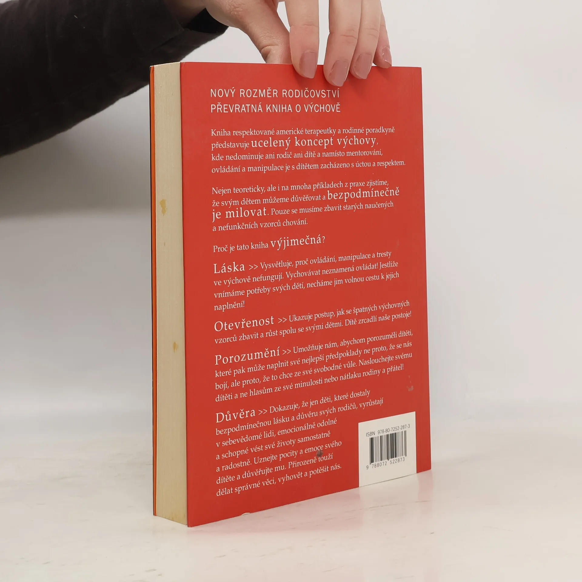 Kniha respektované americké terapeutky a rodinné poradkyně představuje ucelený koncept výchovy, kde nedominuje ani rodič ani dítě a namísto mentorování, ovládání a manipulace je s dítětem zacházeno s úctou a respektem. Nejen teoreticky, ale i na mnoha příkladech z praxe zjistíme, že svým dětem můžeme důvěřovat a bezpodmínečně je milovat. Pouze se musíme zbavit starých naučených a nefunkčních vzorců chování. Proč je tato kniha výjimečná? láska- vysvětluje, proč ovládání, manipulace a tresty ve výchově nefungují. otevřenost- ukazuje postup, jak se špatných výchovných vzorců zbavit a růst spolu se svými dětmi. porozumění- umožňuje nám, abychom porozuměli dítěti, které pak může naplnit své nejlepší předpoklady. důvěra- dokazuje, že jen děti, které dostaly bezpodmínečnou lásku a důvěru svých rodičů, vyrůstají v sebevědomé lidi, emocionálně odolné a schopné vést své životy samostatně a radostně.