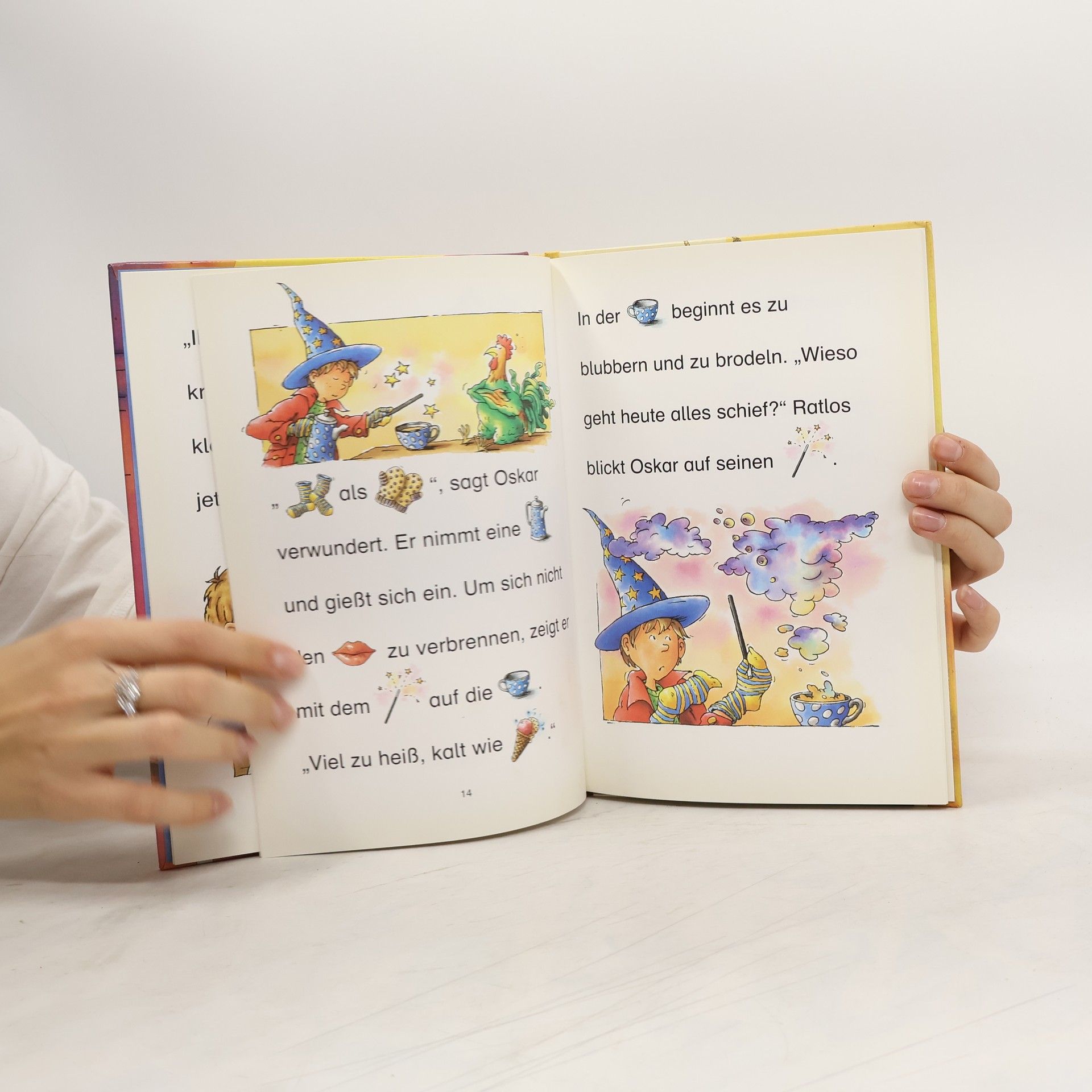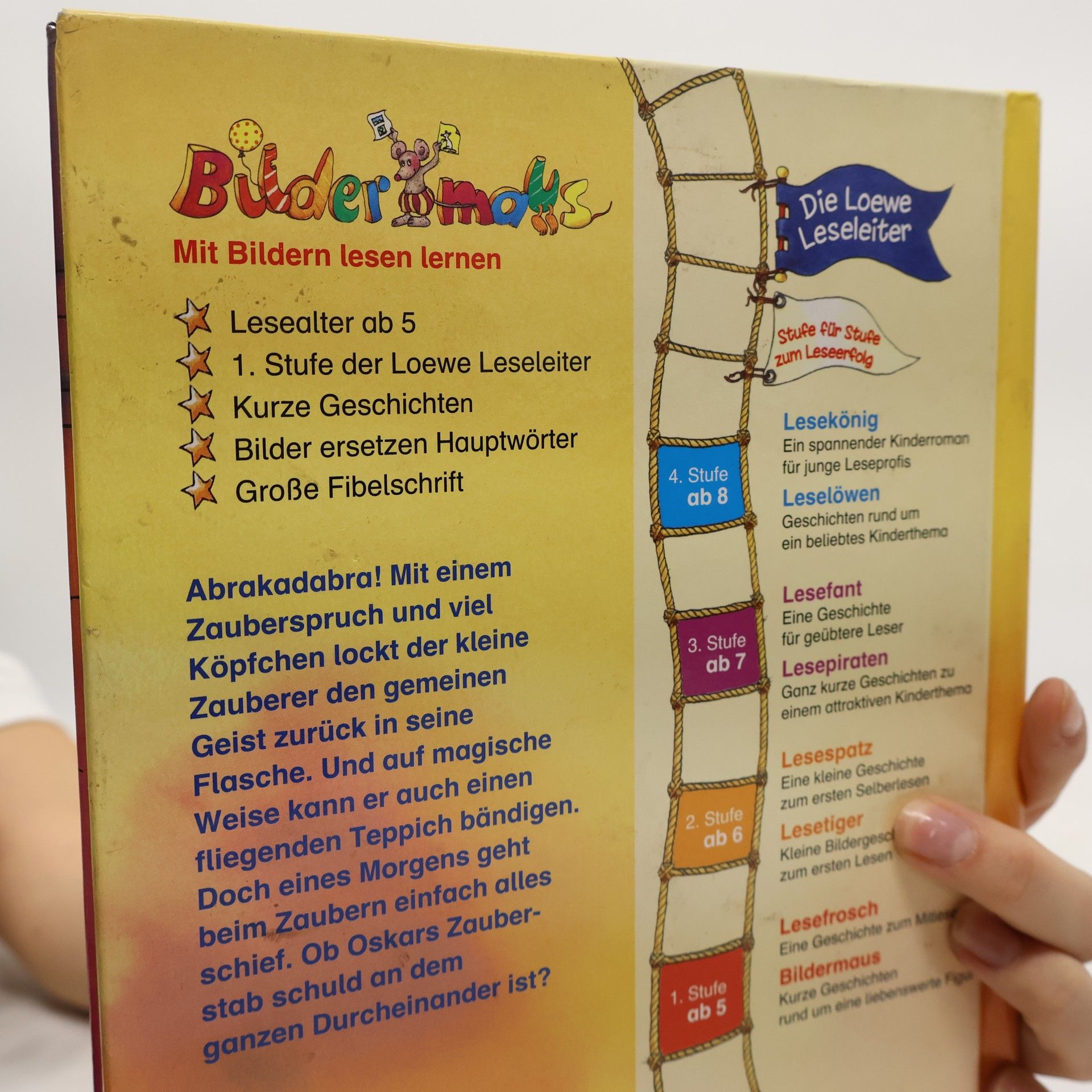 Lesealter ab 5 1. Stufe der Loewe-Leseleiter Kurze Geschichten Bilder ersetzen Hauptwörter Große Fibelschrift Abrakadabra! Mit einem Zauberspruch und viel Köpfchen lockt der kleine Zauberer Oskar den gemeinen Geist zurück in seine Flasche. Und auf magische Weise kann er auch einen fliegenden Teppich bändigen. Doch eines Morgens geht beim Zaubern einfach alles schief. Ob Oskars Zauberstab schuld an dem ganzen Durcheinander ist?