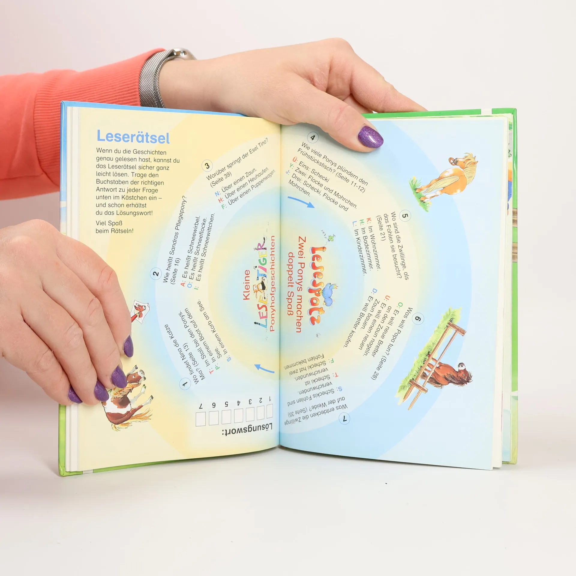 Immer zwei Leseleiter-Bände derselben Stufe werden in einem Buch mit Wendeeffekt zusammengefasst: Wie man's dreht und wendet - hier ist jede Menge Lesespaß garantiert! Mit einem spannenden Leserätsel in der Mitte: Verständnisfragen zu jedem Text