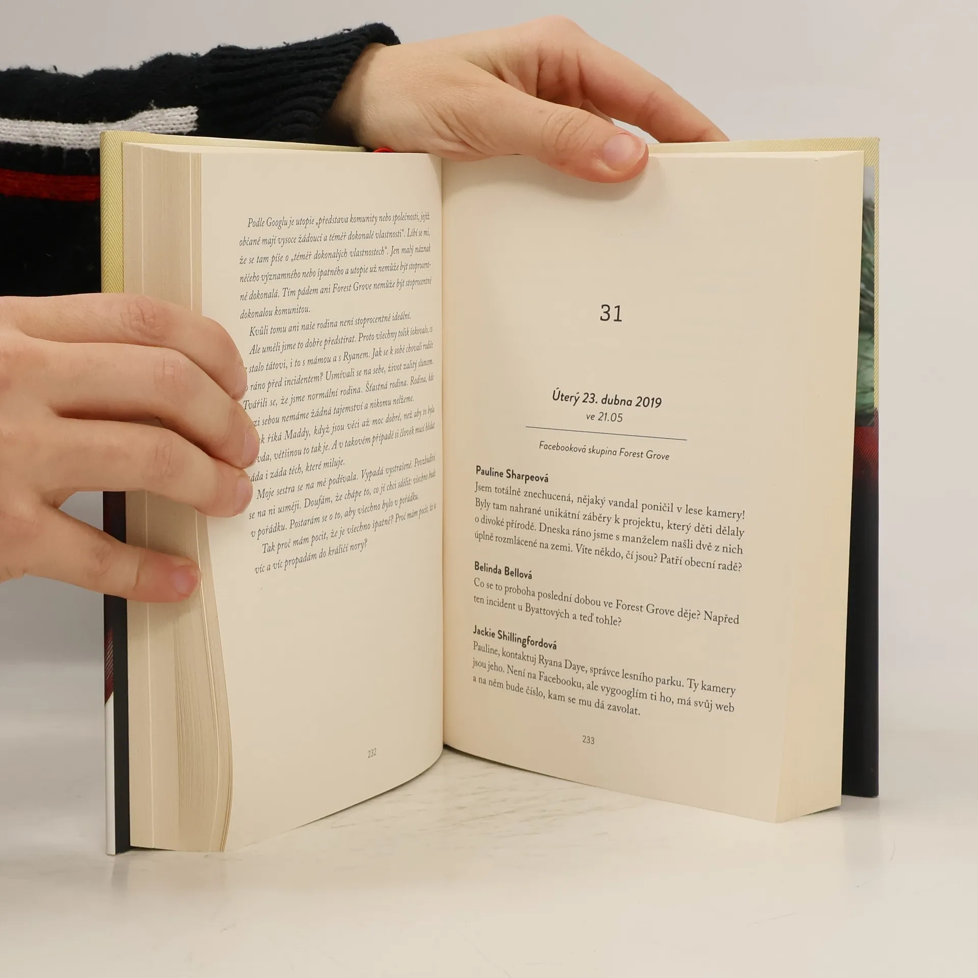 Děti střeží hrozivé tajemství. Dokáže ho jejich matka odhalit dřív než policie? Melissa Byattová žije na malé vesnici Forest Grove. Životy lidí v místní komunitě jsou vzájemně úzce propojené. Melissin život je zdánlivě dokonalý – má milujícího manžela, tři šikovné děti a dům na krásném místě u lesa. Ale zdání klame. Jednou odpoledne, když přijde Melissa domů, stane se svědkem něčeho nepředstavitelného: najde manžela ležet pobodaného na podlaze. Děti jen stojí kolem a tiše na něj zírají. Ke svému zděšení si Melissa postupně uvědomí, že trestný čin musel spáchat někdo z nich. Ale kdo? A jaký důvod by dítě muselo mít, aby bodlo nožem vlastního otce? Váhá, co má udělat, ale pak se ve zlomku vteřiny rozhodne děti chránit, a to i za cenu, že bude lhát policii. Když však někdo z vesnice začne tvrdit, že ví víc, než by měl, Melissa začne v rámci vlastního pátrání odhalovat další tajemství, o nichž neměla ani tušení. Dokáže zjistit pravdu, zabránit skandálu a udržet rodinu pohromadě? A jsou děti skutečně tak nevinné, jak tvrdí?