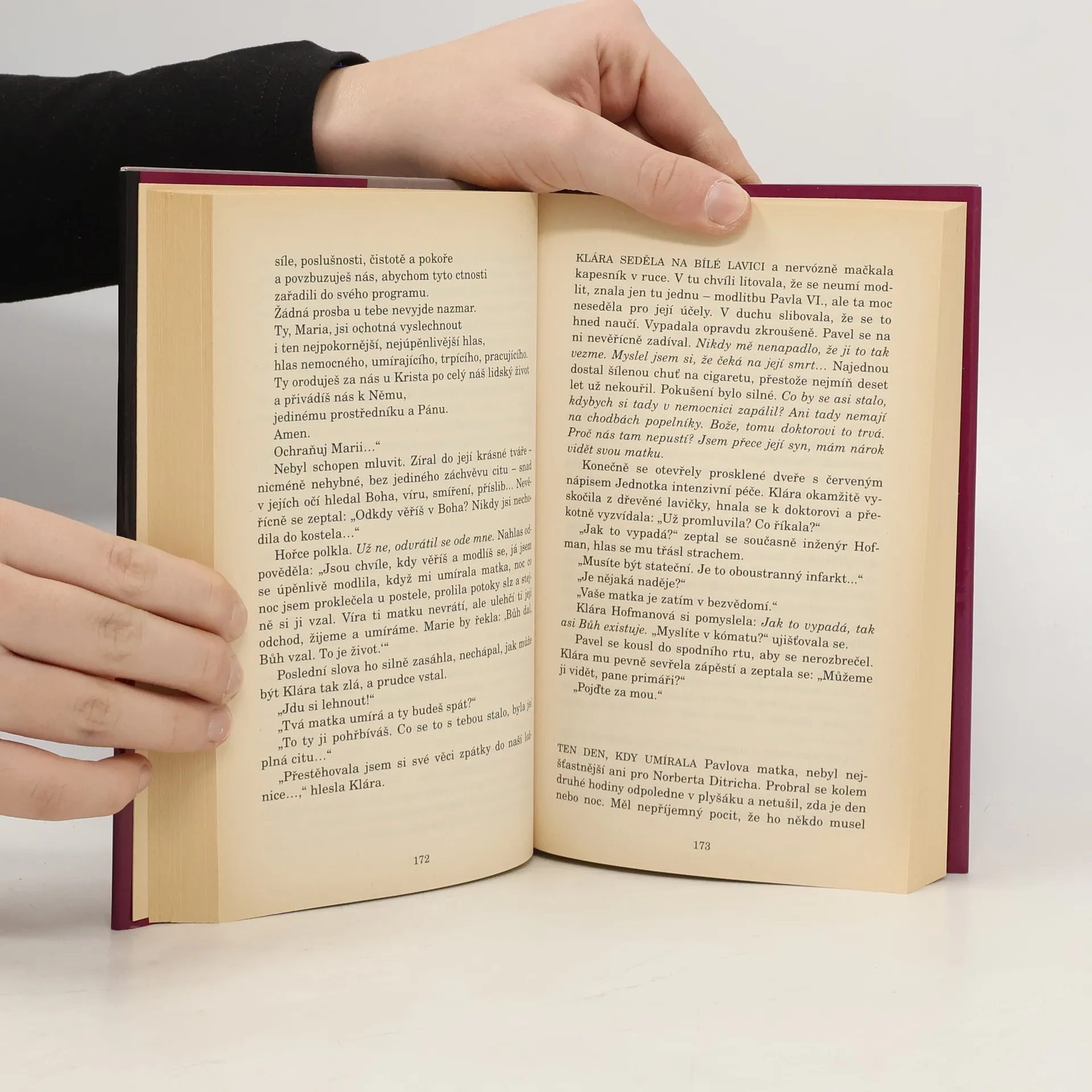 Na první pohled manželství jako každé jiné. Navíc inženýru Hofmanovi, náměstku ředitele banky, všichni kolegové jeho krásnou ženu závidí. Klára Hofmanová, atraktivní pětatřicetiletá tmavovláska, šéfredaktorka F-revue a autorka vyhledávaných sloupků a povídek o osudech žen, však prochází těžkou zkouškou. Nedokáže se vyrovnat se smrtí pětiletého synka a ztrácí smysl života. V dusné atmosféře rodinné secesní vily, kde bydlí pod stálým dohledem sobecké, kruté tchyně, v manželství, o němž ztratila poslední iluze, a po boku manžela, jenž si bezohledně buduje kariéru a psychický stav své ženy ani nezaznamená, pronásleduje Kláru jediná myšlenka: odejít z tohoto světa a konečně se někde tam setkat se svým Lukáškem. Unavená a zhroucená nedokáže psát, odchází ze zaměstnání a pokusí se o sebevraždu. Léčí se na psychiatrické léčebně a pomalu se uzdravuje. Po návratu domů se Klára snaží věnovat každodenním povinnostem, ale nesnesitelné psychické vydírání tchyně, tlak okolí, aby měla další dítě, které jí zhojí rány, a manželova nevěra znovu rozleptávají její sebedůvěru a přispívají k prohloubení duševní choroby. Potom se však v sousedství objeví Norbert, úspěšný malíř, který se právě vrátil ze Států. Klára bohémského umělce okouzlí a on se poprvé v životě zamiluje na první pohled. Touží s Klárou žít, ale záleží jen na ní, zda se dokáže vymanit z přediva lží a překročit práh do skutečného smysluplného života...