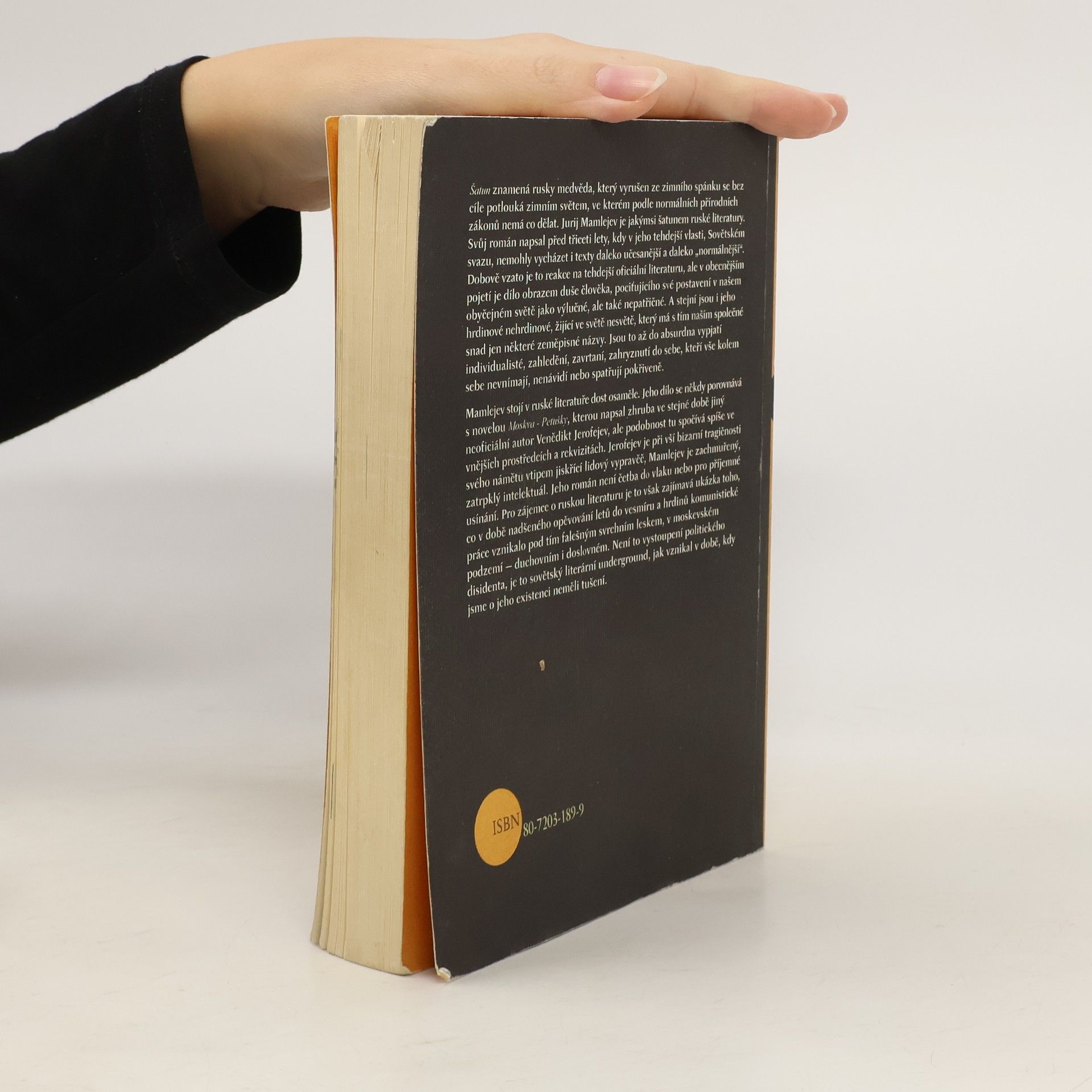 Pro slovo šatun nemáme v češtině výraz. Znamená medvěda vyrušeného ze zimního spánku a potácejícího se světem, jemuž nerozumí a do něhož nepatří. A stejní jsou i Mamlejevovi „hrdinové“, kteří žijí fantaskní příběhy-nepříběhy odehrávající se „na oné straně života“, jak sami říkají, a pohybují se světem, který má s tím naším společné jen některé zeměpisné pojmy. Mamlejev (*1931) sám byl dvojím způsobem exkomunikován z kontextu poválečné ruské literatury, v němž jeho dílo patří k nejvýznamnějším jevům. Zaprvé se z vnitřní emigrace v Sovětském svazu v 70. letech vystěhoval do Spojených států a později do Francie, podstatnější však byla exkomunikace v rovině estetické. Mamlejev byl pro mnoho svých současníků nepřijatelný jako autor, který ve svém zájmu o lidskou duši a sociální bytí sovětského člověka zašel neúnosně daleko. Doslov Tomáš Glanc.