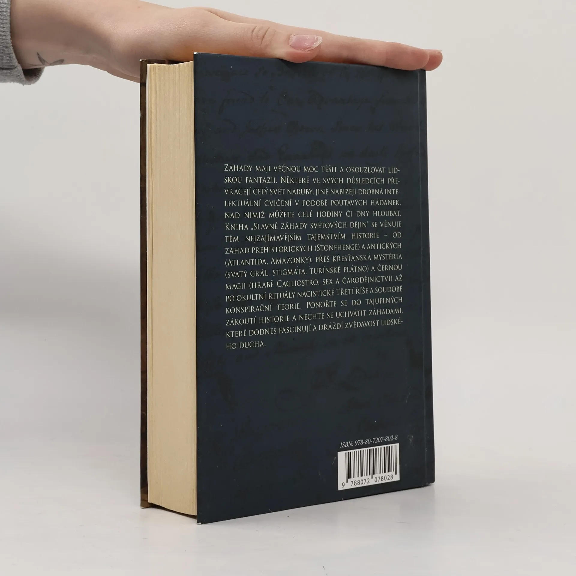 Záhady mají věčnou moc těšit a okouzlovat lidskou fantazii. Některé ve svých důsledcích převracejí celý svět naruby, jiné nabízejí drobná intelektuální cvičení v podobě poutavých hádanek, nad nimiž můžete celé hodiny či dny hloubat. Kniha Slavné záhady světových dějin se věnuje těm nejzajímavějším tajemstvím historie – od záhad prehistorických (Stonehenge) a antických (Atlantida, Amazonky), přes křesťanská mystéria (svatý grál, stigmata, turínské plátno) a černou magii (hrabě Cagliostro, sex a čarodějnictví) až po okultní rituály nacistické Třetí říše a soudobé konspirační teorie. Ponořte se do tajuplných zákoutí historie a nechte se uchvátit záhadami, které dodnes fascinují a dráždí zvědavost lidského ducha.