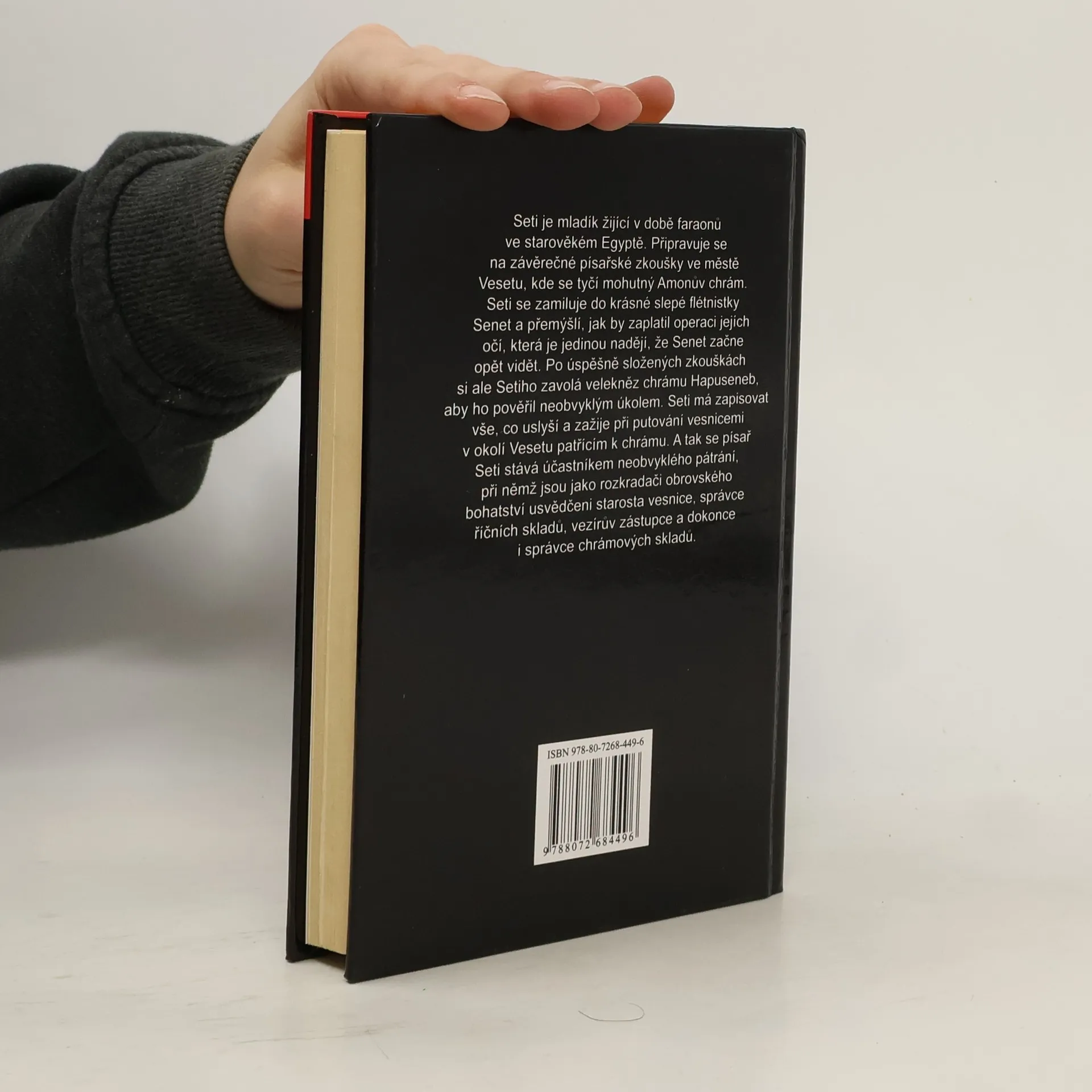 Seti je mladík žijící v době faraonů ve starověkém Egyptě. Připravuje se na závěrečné písařské zkoušky ve městě Vesetu, kde se tyčí mohutný Amonův chrám. Seti se zamiluje do krásné slepé flétnistky Senet a přemýšlí, jak by zaplatil operaci jejích očí, která je jedinou nadějí, že Senet začne opět vidět. Po úspěšně složených zkouškách si ale Setiho zavolá velekněz chrámu Hapuseneb, aby ho pověřil neobvyklým úkolem. Seti má zapisovat vše, co uslyší a zažije při putování vesnicemi v okolí Vesetu patřícím k chrámu. A tak se písař Seti stává účastníkem neobvyklého pátrání, při němž jsou jako rozkradači obrovského bohatství usvědčeni starosta vesnice, správce říčních skladů, vezírův zástupce a dokonce i správce chrámových skladů.