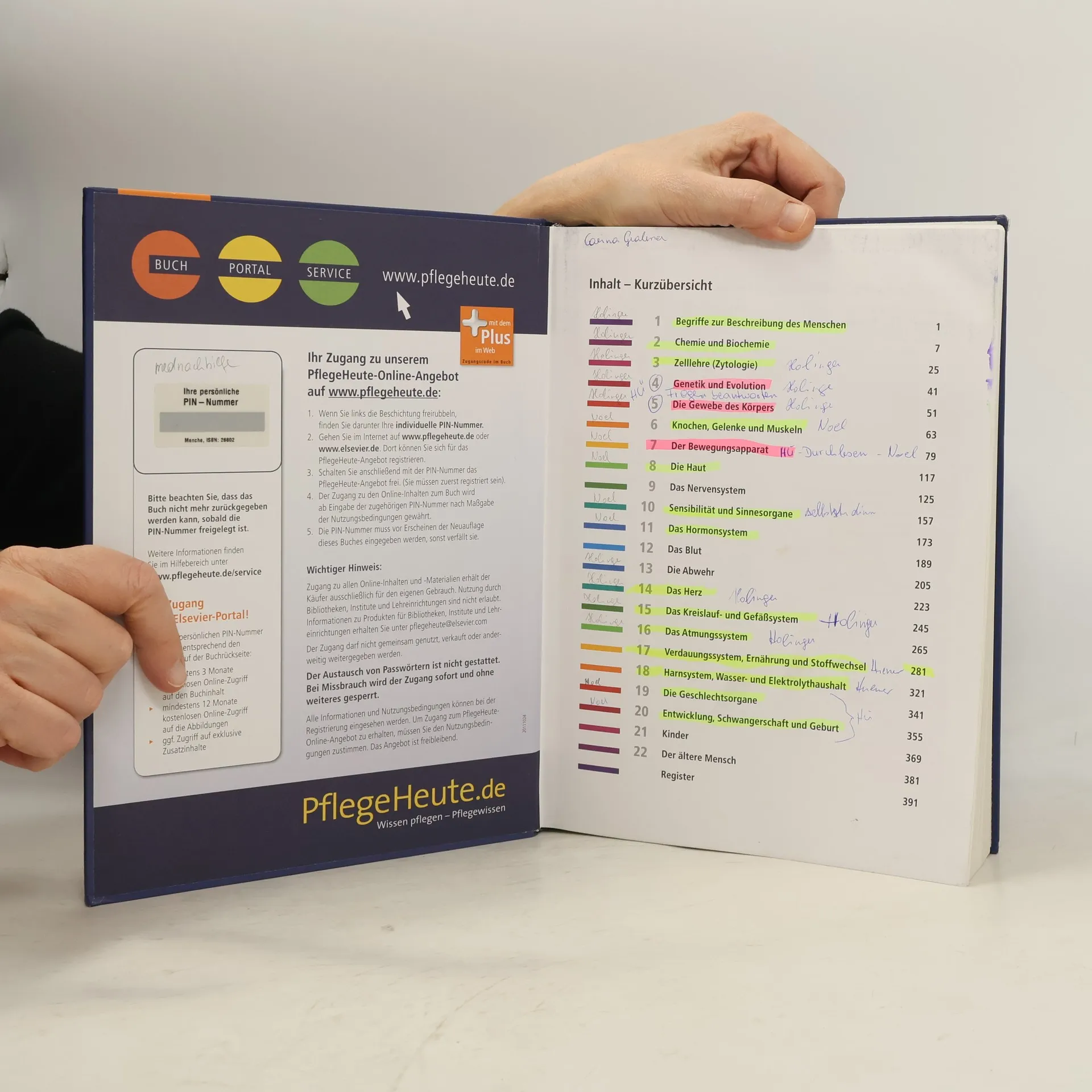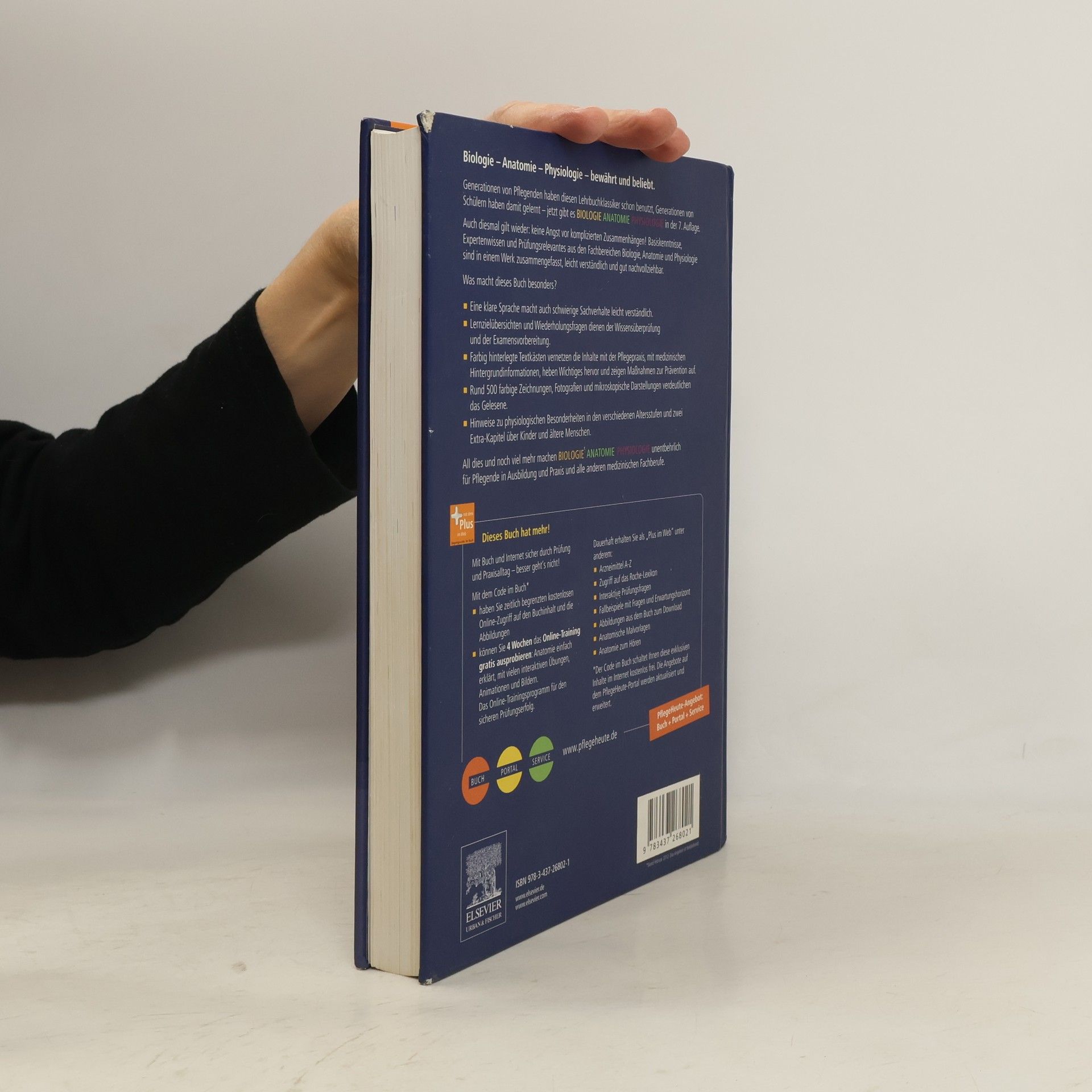 Kompakt und praxisnah bietet dieser Lehrbuch-Klassiker für die Pflegeausbildung alle relevanten Inhalte der Wissensgrundlagen Anatomie, Physiologie und Biologie. Diese sind eng mit Krankheitslehre und Pflege vernetzt und daher optimal auf die Berufspraxis ausgerichtet. Rund 500 hervorragende Farbillustrationen und eine klare Sprache machen auch komplizierte Zusammenhänge leicht verständlich. Lernzielübersichten und Wiederholungsfragen nach jedem Kapitel dienen der Wissensüberprüfung und der Examensvorbereitung. Neu in der 7. Auflage: - Sämtliche Inhalte überarbeitet und aktualisiert, insbesondere die Pflegehinweise und die klinischen und physiologischen Aspekte - Übersichtliches, lernfreundliches Layout - Abbildungen aktualisiert und erweitert um viele mikroskopische Aufnahmen Mit dem Code im Buch haben Sie ab Aktivierung 3 Monate kostenlosen Online-Zugriff auf den Buchinhalt und unbegrenzten Zugriff auf die Abbildungen. Dauerhaft erhalten Sie zusätzlich: - Interaktive Wiederholungsfragen zur Prüfungsvorbereitung - Fallbeispiele mit Fragen und Antworten - 4 Wochen lang exklusiven Zugang zu dem Online-Training zu Biologie Anatomie Physiologie & Mensch Körper Krankheit und können sich auf die Prüfung vorbereiten: Anatomie einfach erklärt, mit vielen interaktiven Übungen, Animationen und Bilder – Prüfungserfolg garantiert!