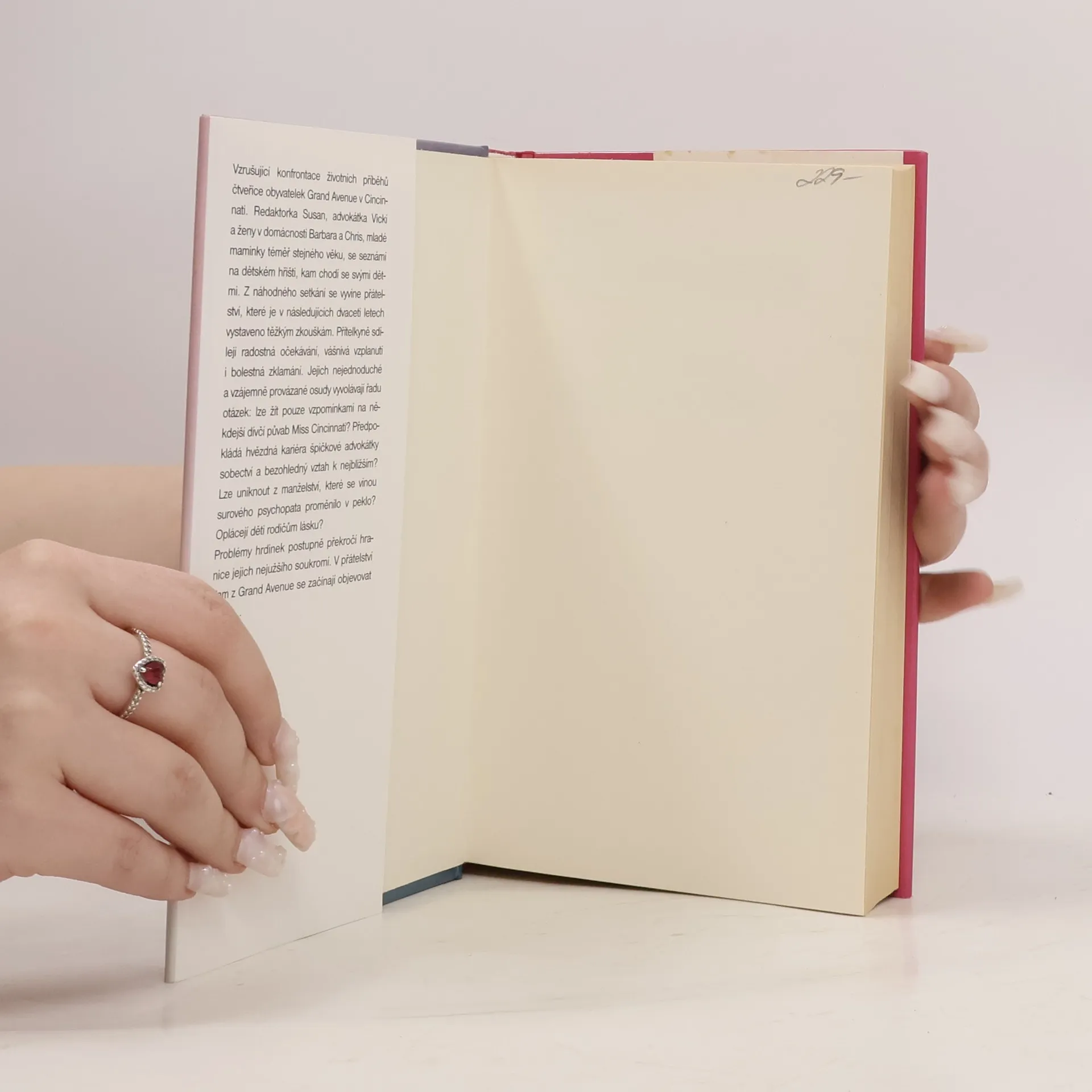 Vzrušující konfrontace životních příběhů čtveřice obyvatelek Grand Avenue v Cincinnati. Redaktorka Susan, advokátka Vicki a ženy v domácnosti Barbara a Chris, mladé maminky téměř stejného věku, se seznámí na dětském hřišti, kam chodí se svými dětmi. Z náhodného setkání se vyvine přátelství, které je v následujících dvaceti letech vystaveno těžkým zkouškám. Přítelkyně sdílejí radostná očekávání, vášnivá vzplanutí i bolestná zklamání. Jejich nejednoduché a vzájemně provázané osudy vyvolávají řadu otázek: lze žít pouze vzpomínkami na někdejší dívčí půvab Miss Cincinnati? Předpokládá hvězdná kariéra špičkové advokátky sobectví a bezohledný vztah k nejbližším? Lze uniknout z manželství, které se vinou surového psychopata proměnilo v peklo? Oplácejí děti rodičům lásku? Problémy hrdinek postupně překročí hranice jejich nejužšího soukromí. V přátelství dam z Grand Avenue se začínají objevovat strhliny...