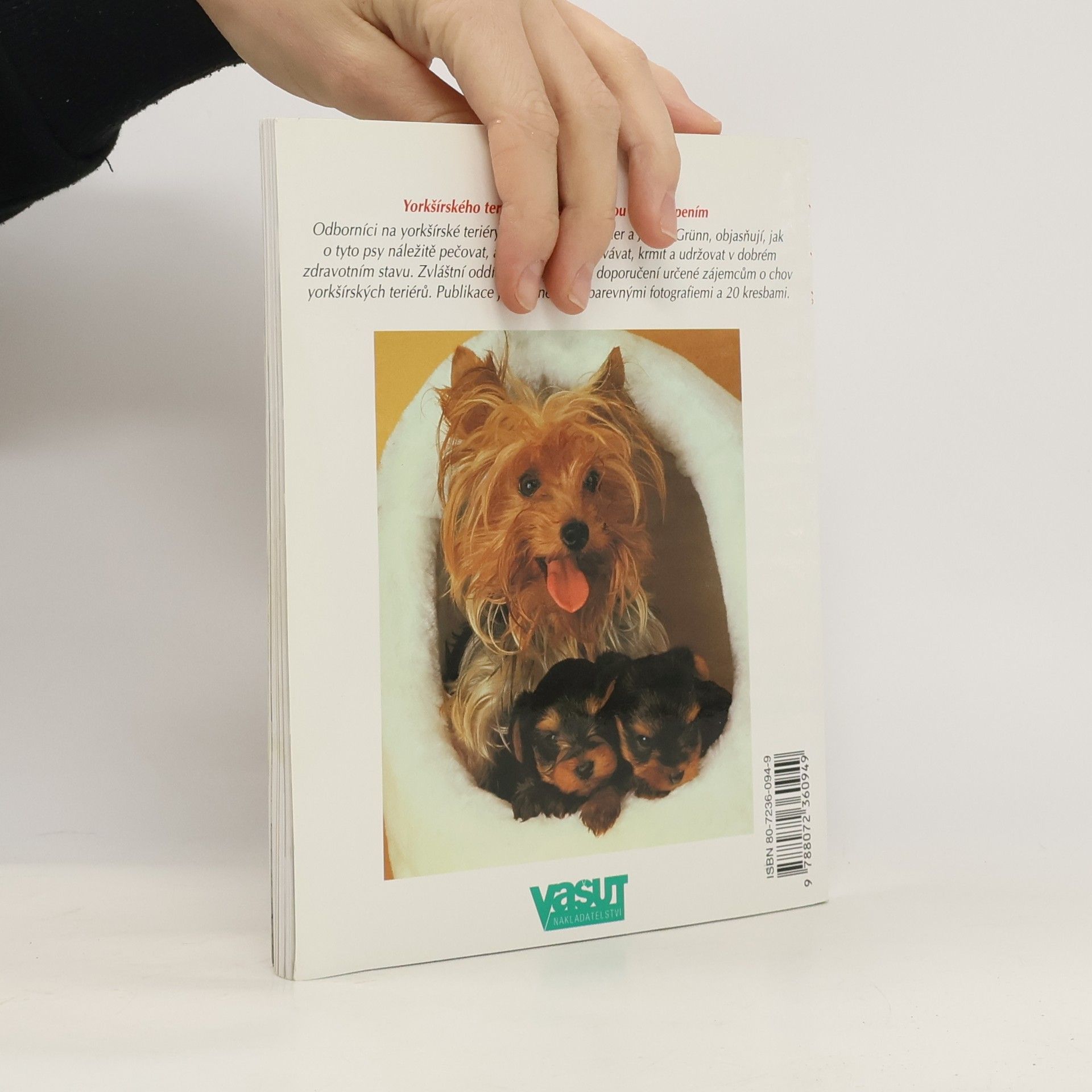 Odborníci na yorkšírské teriéry, Armin Kriechbauer a Jürgen Grünn, objasňují, jak o tyto psy náležitě pečovat, a radí, jak je vychovávat, krmit a udržovat v dobrém zdravotním stavu. Zvláštní oddíl obsahuje rady a doporučení určené zájemcům o chov yorkšírských teriérů. Publikace je doplněna 20 barevnými foografiemi a 20 kresbami.