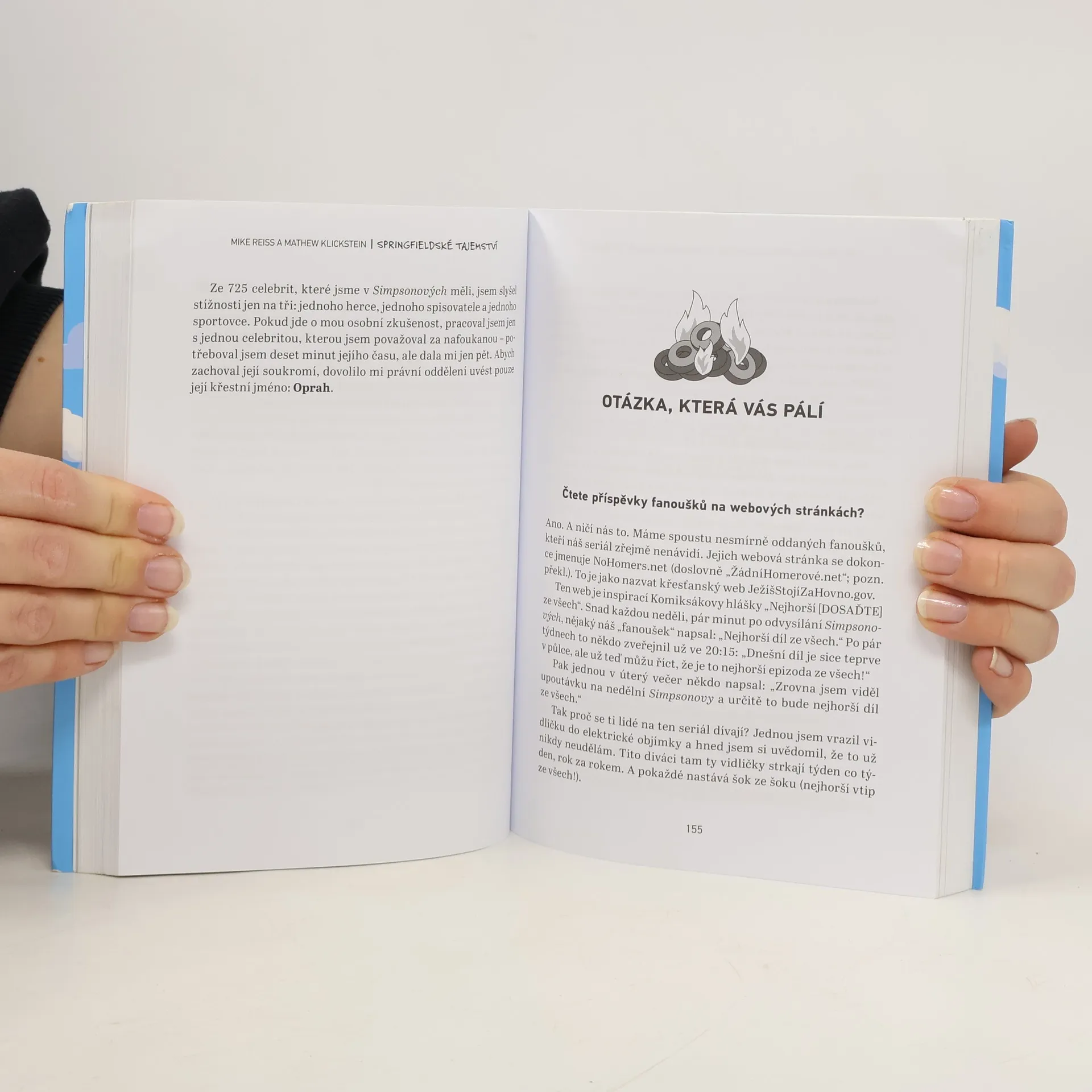 Historie, fakta a úplné lži o Simpsonových. Mike Reiss – čtyřnásobný vítěz cenny Emmy, který na Simpsonových pracuje už od roku 1989 – přináší příběhy, skandály a drby o nejznámější americké kreslené rodince. Vysvětluje tvůrčí pozadí seriálu a představuje ostatní autory, animátory, herce i hostující celebrity. Odpovídá na řadu fanouškovských dotazů a vzpomíná na vznik nejoblibenějších epizod. Profesionální vtipálek se zároveň zamýšlí nad vlastním životem se Simpsonovými a zdůrazňuje své úspěchy i neúspěchy. Čtenářům prozradí, proč jsou všechny postavičky v seriálu žluté, jaké to je trávit šedesát hodin týdně v místnosti plné humoristů nebo na co přišel při cestě po 70 zemích světa, kde Simpsonovy vysílají (v některých přitom ani nefunguje elektřina!). A možná se dozvíte i odpověď na otázku ze všech nejpalčivější: Kde ten zpropadený Springfield vlastně leží?
