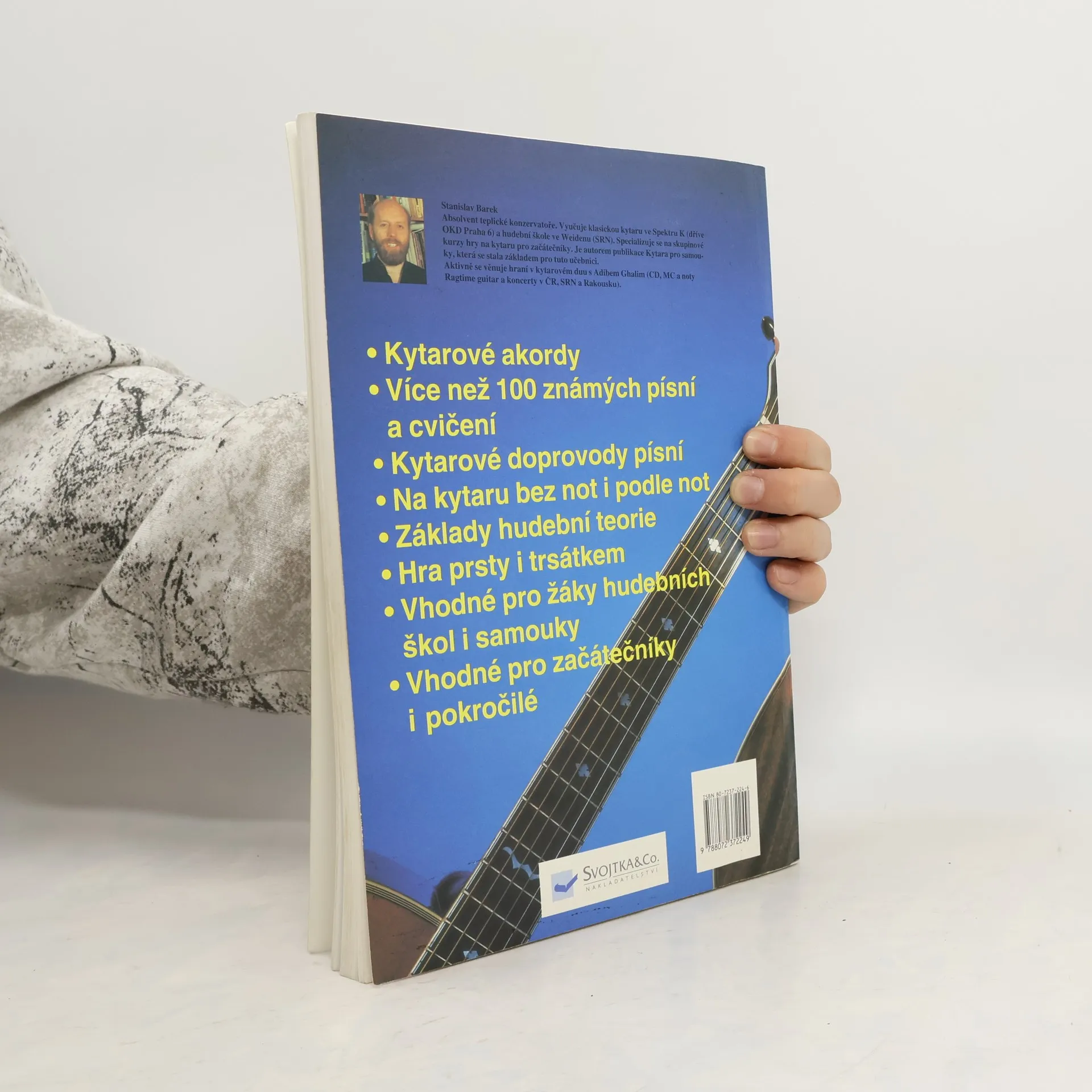 Popisuje základy hry na kytaru až k úplnému zvládnutí nástroje. Více než 100 textu nejznámnejších. Základy hudební teorie. Vhodná pro samouky i žáky hudebních škol.