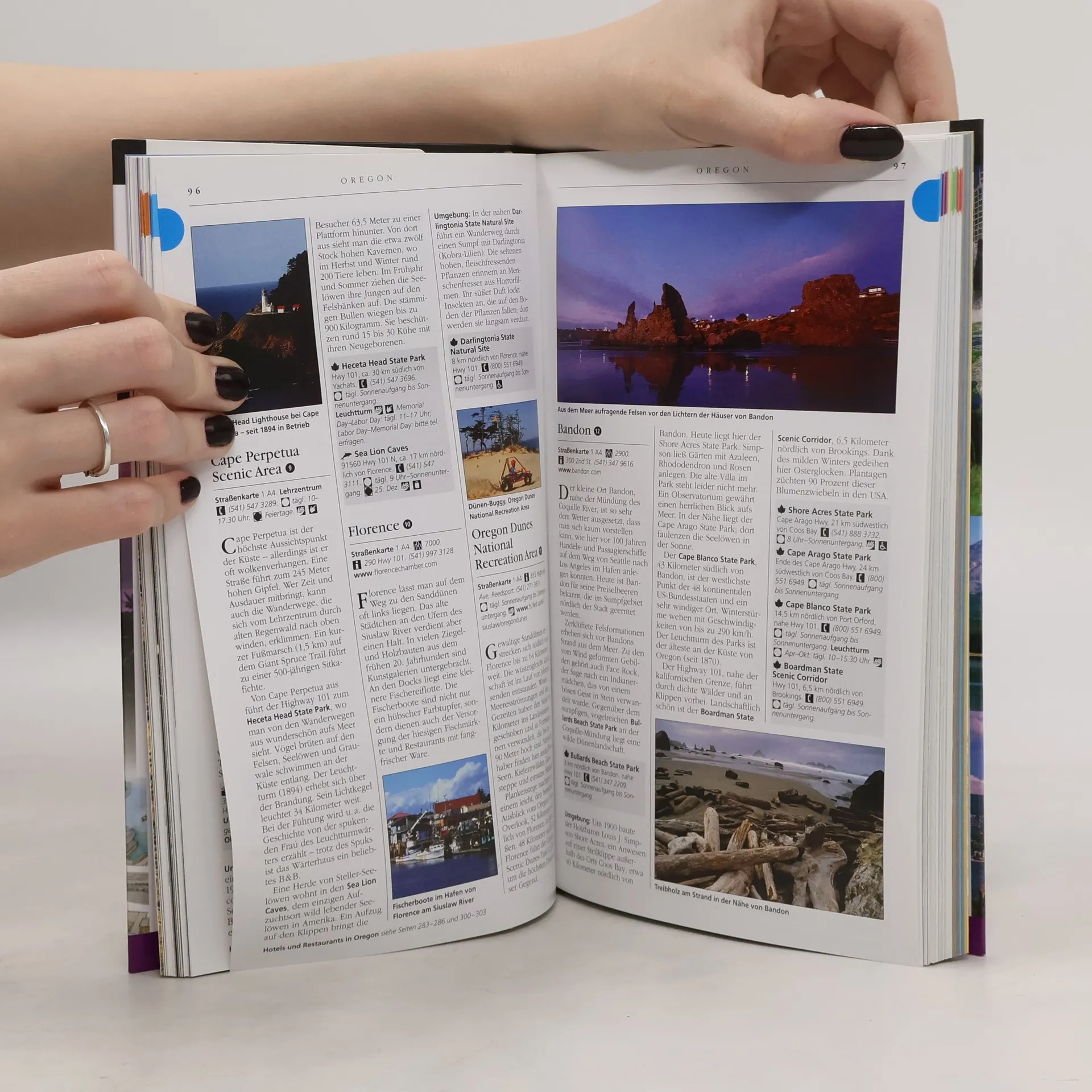 Ausgedehnte Wanderungen in den Rocky Mountains, River-Rafting oder Snowboarden - die grandiose Naturkulisse des amerikanischen Nordwestens ist wie geschaffen für Aktivurlauber. Naturliebhabern bietet sich hier eine größtenteils noch unberührte Wildnis und eine einzigartige Tierwelt. Der Vis-à-Vis-Reiseführer „USA Nordwesten & Vancouver“ zeigt, wo man auch heutzutage noch zum Abenteurer werden kann. Und wer es doch ein bisschen belebter mag, der findet in quirligen Metropolen wie Vancouver oder Seattle Abwechslungen aller Art: Ein buntes Kultur- und ein aufregendes Nachtleben, Wolkenkratzer und Shoppingparadiese locken hier die Besucher. Wo man zum Beispiel den delikatesten Wildlachs isst oder gleich selber angeln kann, erfährt der Urlauber in zahlreichen praktischen Informationen, Tipps und Adressen.