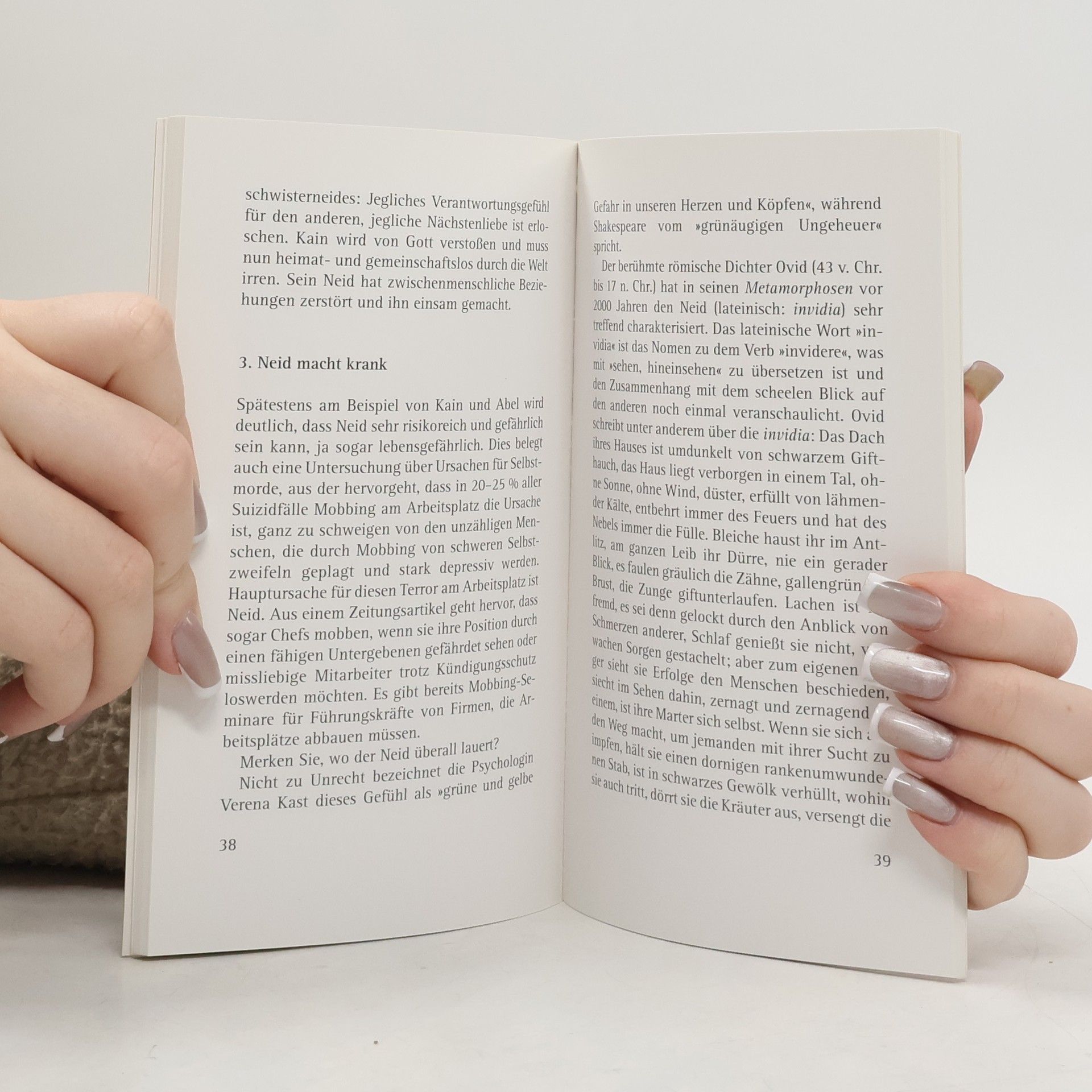 Kaum ein Gefühl ist so bekannt und trotzdem so verkannt in seiner zerstörerischen Wirkung wie der Neid. Am besten lässt sich das Neidgefühl beschreiben als ein Stich, der uns durchfährt, wenn wir das Aussehen, Eigentum oder die Leistung einer anderen Person bewusst wahrnehmen und uns dann im Vergleich ungerecht behandelt sehen. Birgit Sych sieht genau hin und enttarnt verborgene Neid-Ecken unserer Seele; vor allem gibt sie in ihrem „Anti-Neid-Programm“ Hilfen, wie wir mit diesem Gefühl umgehen können.