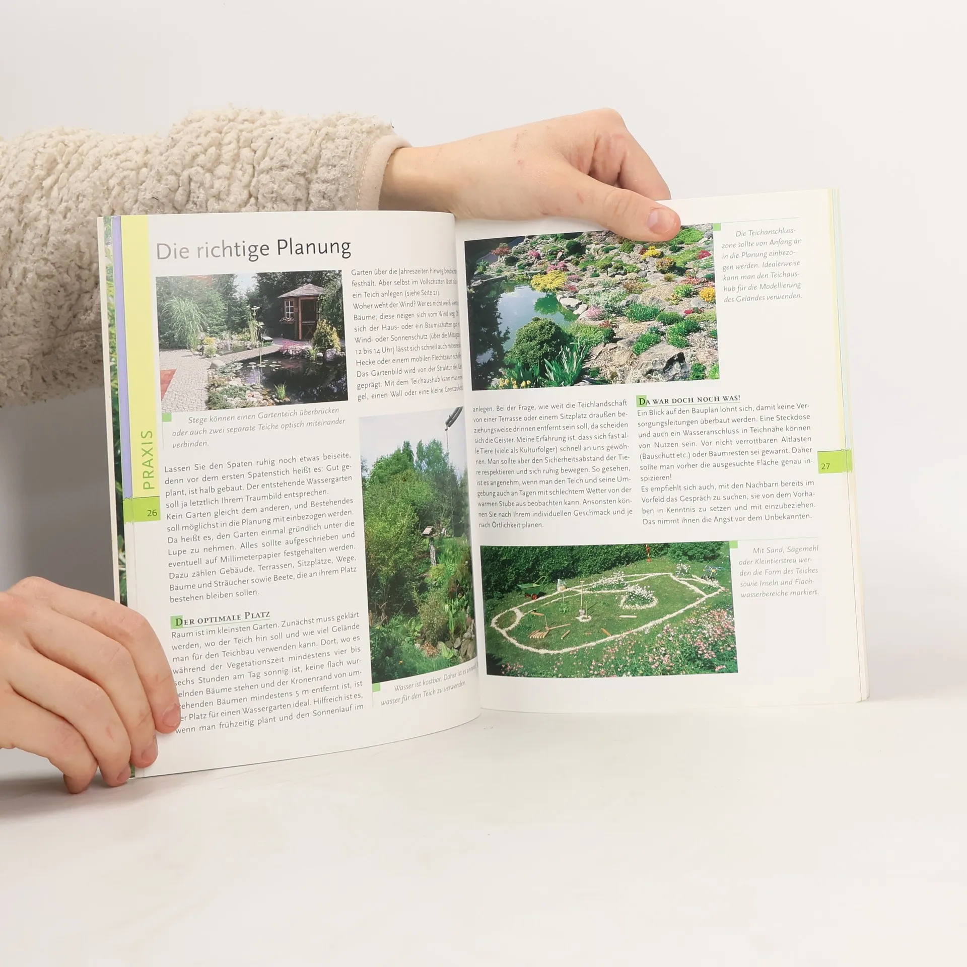 Vorgestellt werden naturnahe Teichvarianten (Eigenbau, Folien-, Fertig- und Moorteich, Teiche im Hochbau und am Hang, Miniwassergärten etc.), deren Technik, Bepflanzung, Pflege, Standort u.a.; reich illustriert.