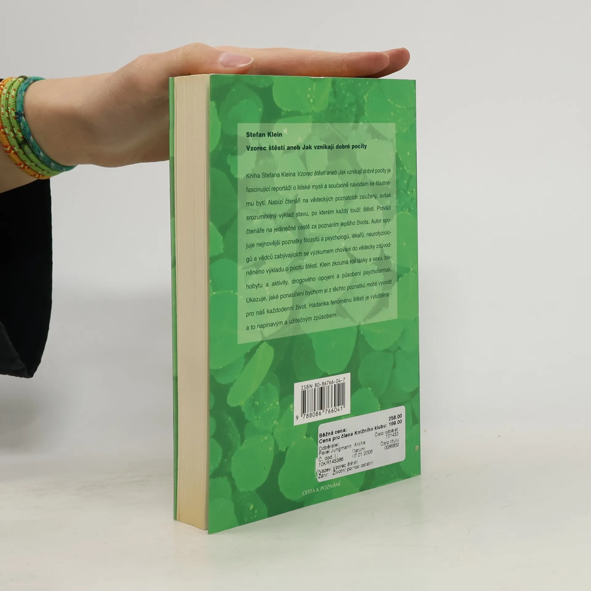 aneb Jak vznikají dobré pocity. V životě se snažíme udělat takřka vše pro to, abychom byli šťastní. Kniha nabízí na vědeckých poznatcích založený, avšak srozumitelný výklad stavu, po kterém každý touží: štěstí. Při poznávání štěstí mají rozhodující roli moderní věda a vědci zabývající se výzkumem mozku. Klein důmyslně spojuje a interpretuje výsledky vědeckých pozorování a experimentů odhalujících, jak v našich hlavách vzniká pocit štěstí. Současně čtenářům odkrývá nové možnosti, jak se naučit být šťastný.... celý text