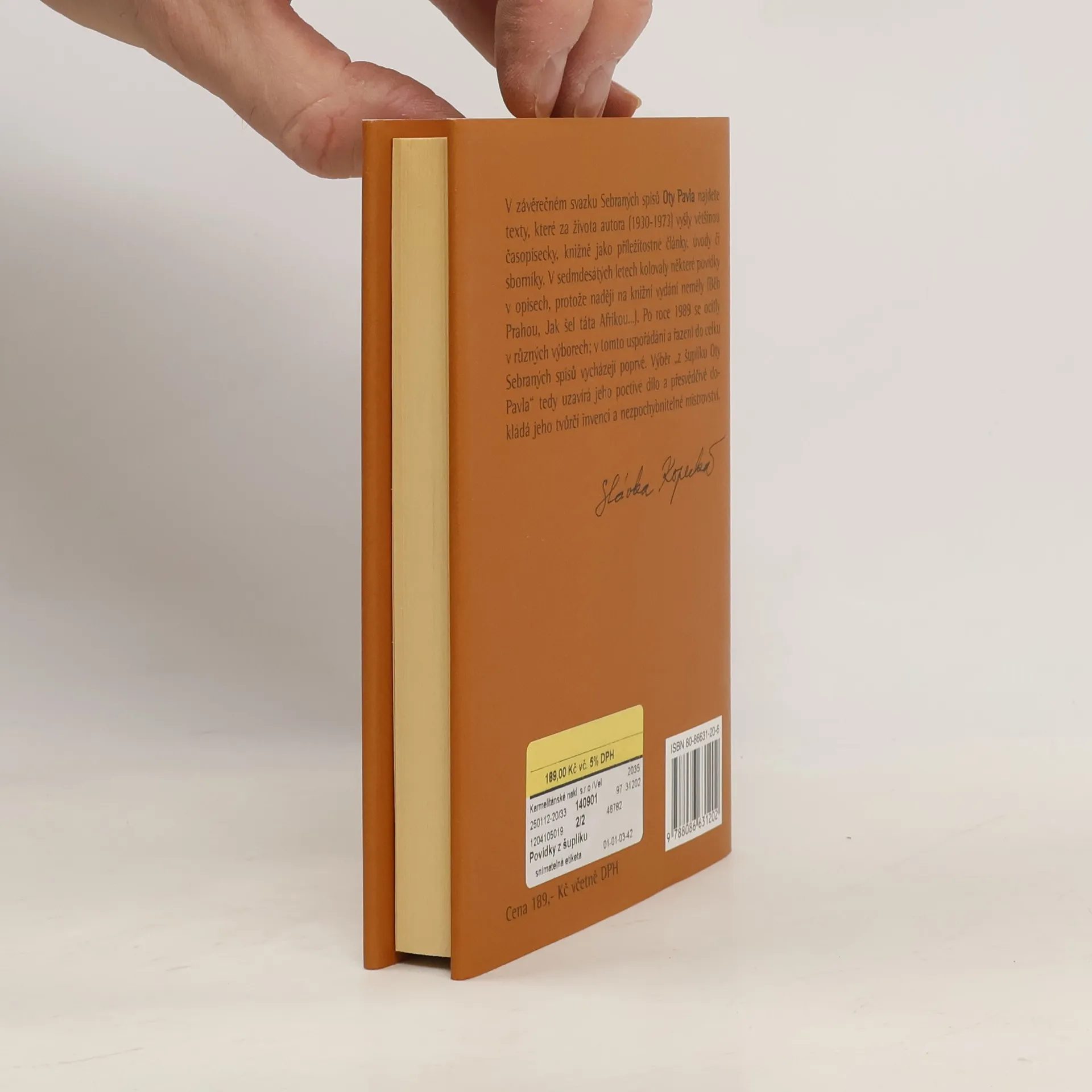 V závěrečném svazku Sebraných spisů Oty Pavla najdeme texty, které za života autora vyšly většinou jen časopisecky, knižně jako příležitostné články, úvody či sborníky. V sedmdesátých letech kolovaly některé povídky v opisech, protože naděje na knižní vydání neměly. Dále jsou do publikace zařazeny texty z pozůstalosti, které v sedmdesátých letech kolovaly pouze v opisech a později byly zařazovány do různých povídkových výborů. Knížku, rozdělenou tematicky do pěti částí, uvozuje fragment emotivní rodinné korespondence. Svazek tak z jiného pohledu doplňuje dosud vydané dílo.