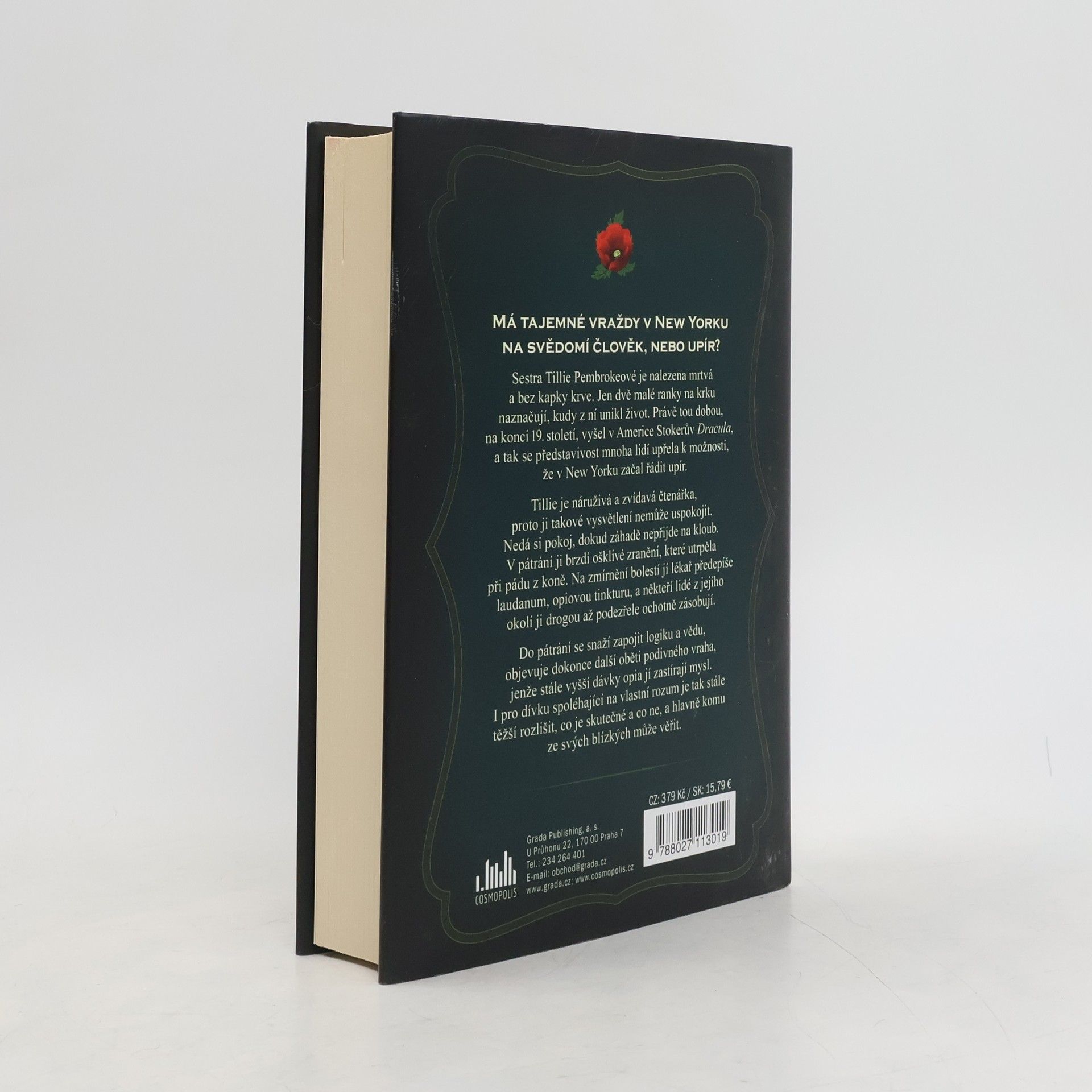 Má tajemné vraždy v New Yorku na svědomí člověk, nebo upír? Sestra Tillie Pembrokeové je nalezena mrtvá a bez kapky krve. Jen dvě malé ranky na krku naznačují, kudy z ní unikl život. Právě tou dobou, na konci 19. století, vyšel v Americe Stokerův Dracula, a tak se představivost mnoha lidí upřela k možnosti, že v New Yorku začal řádit upír. Tillie je náruživá a zvídavá čtenářka, proto ji takové vysvětlení sestřiny smrti nemůže uspokojit. Nedá si pokoj, dokud záhadě nepřijde na kloub. V pátrání ji brzdí ošklivé zranění, které utrpěla při pádu z koně. Na zmírnění bolestí jí lékař předepíše laudanum, opiovou tinkturu, a někteří lidé z jejího okolí ji drogou až podezřele ochotně zásobují. Do pátrání se snaží zapojit logiku a vědu, objevuje dokonce další oběti podivného vraha, jenže stále vyšší dávky opia jí zastírají mysl. I pro dívku spoléhající na vlastní rozum je tak stále těžší rozlišit, co je skutečné a co ne, a hlavně komu ze svých blízkých může věřit.