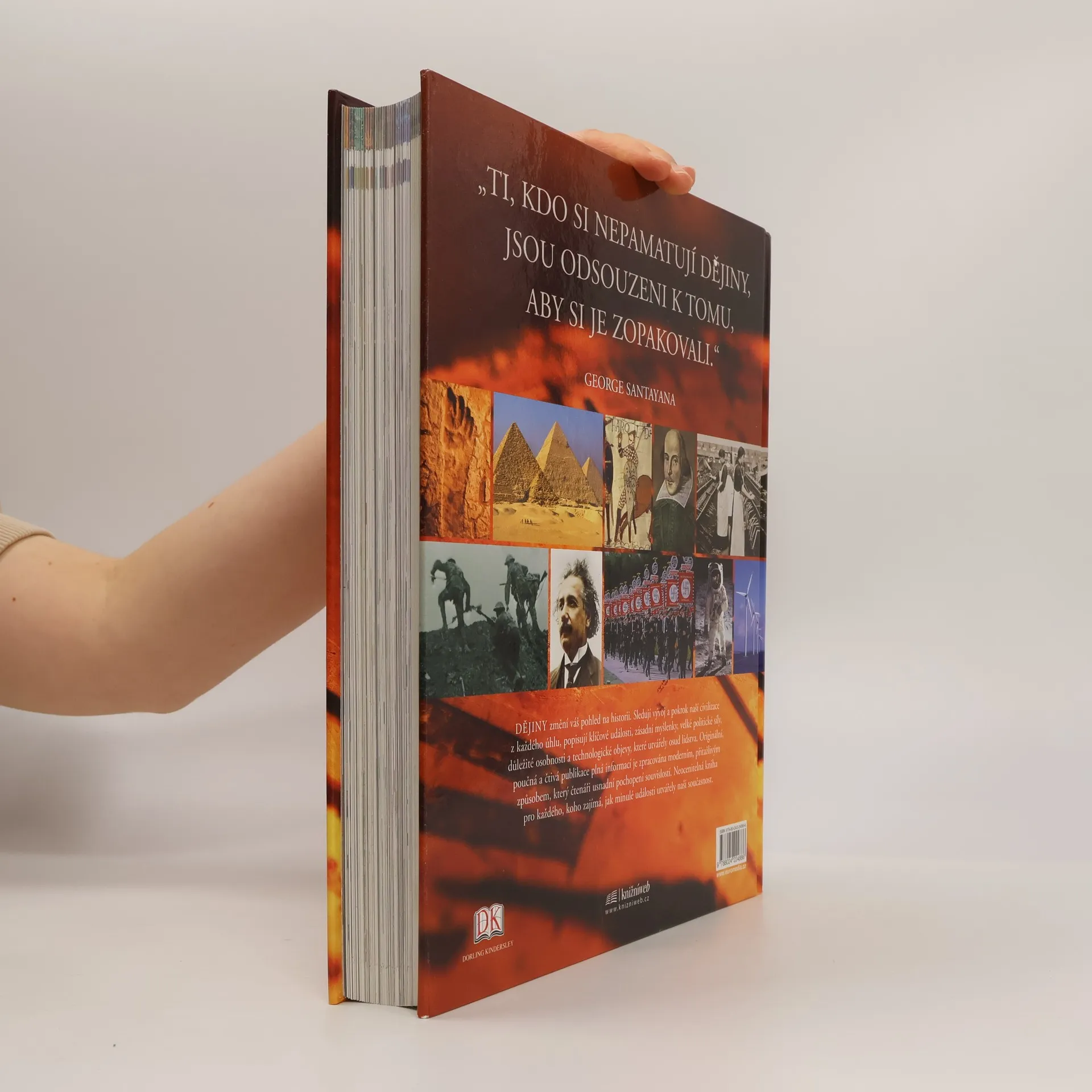 V řadě velkých encyklopedických publikací Zvíře, Člověk, Země atd. představujeme velkoryse pojatý svazek věnovaný dějinám lidstva, od prapočátku po současnost. Texty fundovaných odborníků s bohatým obrazovým doprovodem provázejí čtenáře dlouhým příběhem světových dějin a seznamují ho s významnými událostmi, politickými změnami, válečnými střety atd. Tato kniha však není jen o událostech, které předurčily podobu moderního světa a utvořily identitu nás samotných. Nemenší pozornost je věnována také světu idejí. Jsou zde zkoumány takové fenomény, jako je demokracie, myšlenka evoluce či globalizace. Naleznete zde také biografické medailonky nejvlivnějších osob světových dějin od faraona Ramesse II. až po Martina Luthera Kinga. A na své si přijde i milovník vědy a techniky. Setká se zde s klíčovými inovacemi, vynálezy, vědeckými objevy a teoriemi, které ovlivnily lidské působení na Zemi; od prvního užívání ohně a zpracování kovů až po internet a od DNA až po globální oteplování. Díky působivým fotografiím, mapkám, časovým osám, křížovým odkazům a dalším pomůckám se v knize čtenář snadno zorientuje a Dějiny pro něj budou nejen cennou příručkou, ale i výtvarně působivou obrazovou publikací.