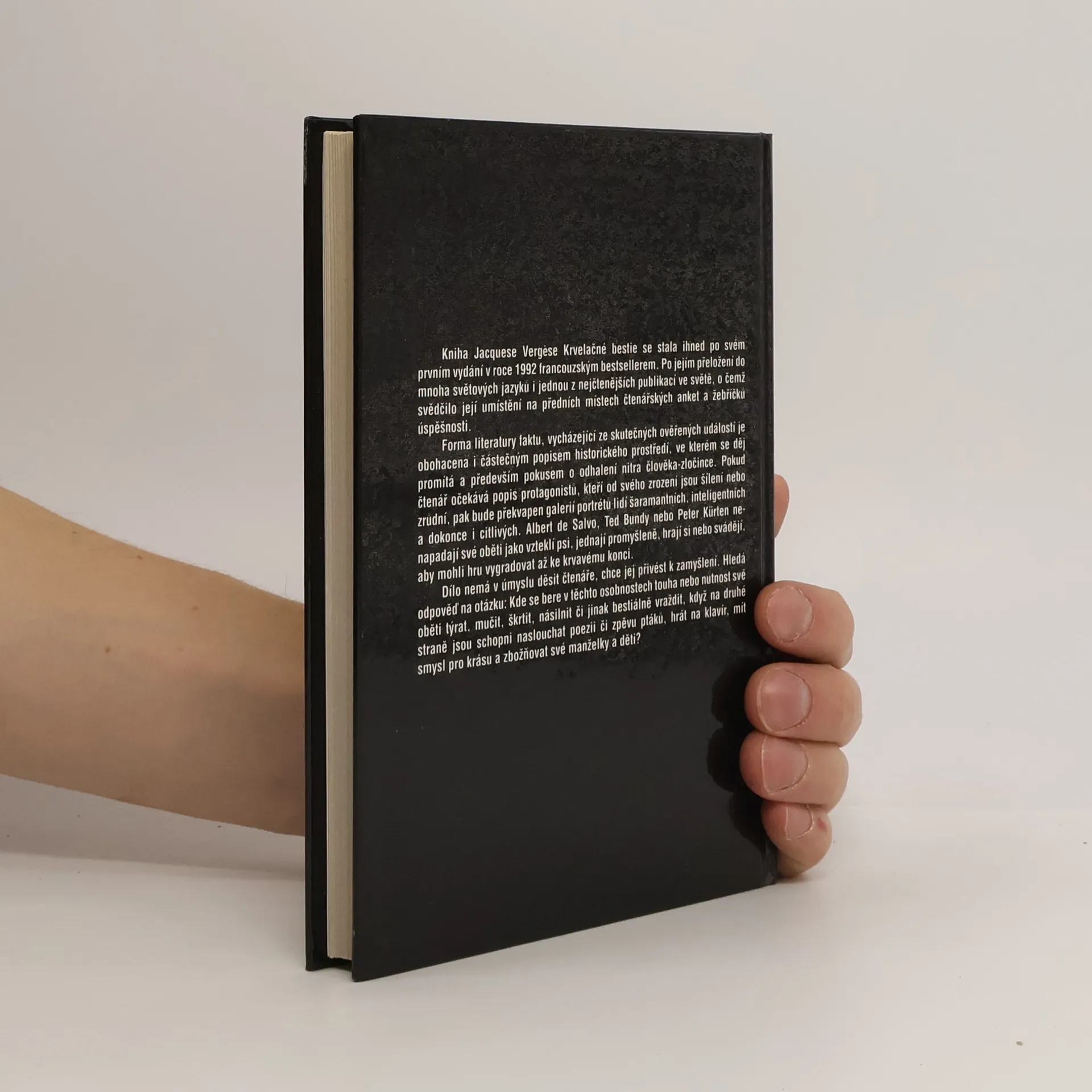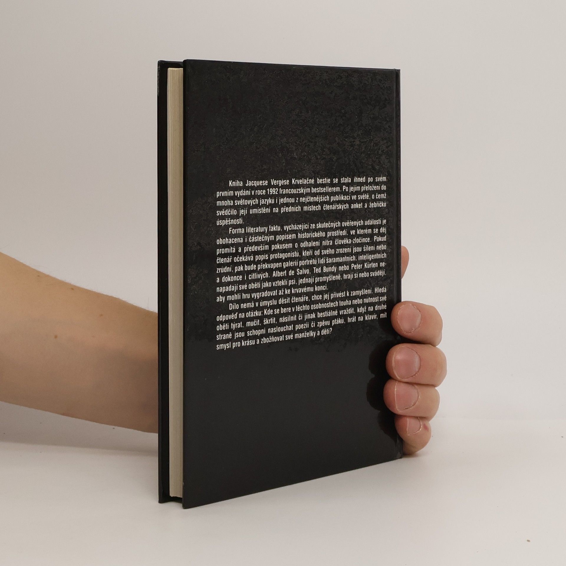 Kniha Jacquese Vergése Krvelačné bestie se stala ihned po svém prvním vydání v roce 1992 francouzským bestsellerem. Po jejím přeložení do mnoha světových jazyků i jednou z nejčastějších publikací ve světě, o čemž svědčilo její umístění na předních místech čtenářských anket a žebříčků úspešnosti. Forma literatury faktu, vycházející ze skutečných ověřených událostí je obohacena i částečným popisem historického prostředí, ve kterém se děj promítá a především pokusem o odhalení nitra člověka-zločince. Pokud čtenář očekává popis protagonistů, kteří od svého zrození jsou šílení nebo zrůdní, pak bude překvapen galerií portrétů lidí šarmantních, inteligentních a dokonce i ctilivých. Albert de Salvo, Ted Bundy nebo Peter Kürten nenapadají své oběti jako vzeklí psi, jednají promyšleně, hrají si nebo svádějí, aby mohli hru vygradovat až ke krvavému konci. Dílo nemá v úmyslu děsit čtenáře, chce jej přivést k zamyšlení. Hledá odpověď na otázku: Kde se bere v těchto osobnostech touha nebo nutnost své oběti týrat, mučit, škrtit, násilnit či jinak bestiálně vraždit, když na druhé straně jsou schopni naslouchat poezii či zpěvu ptáků, hrát na klavír, mít smysl pro krásu a žbožňovat své manželky a děti?